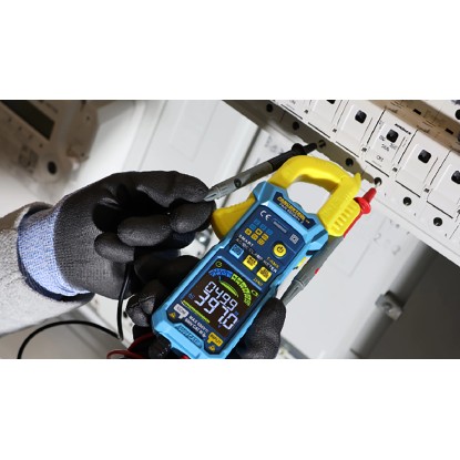 Vďaka automatickému výberu funkcií a rozsahu prístroj spoľahlivo detekuje napätie, prúd, odpor, frekvenciu a kapacitu - bez nutnosti ručného prepínania. Podsvietený digitálny displej s analógovými stĺpcami poskytuje všetky namerané hodnoty jasne a ľahko čitateľné, a to aj za ťažkých svetelných podmienok.