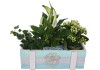 Aranžmán zo zelených a kvitnúcich rastlín v drevenej debne priemer cca 30 cm