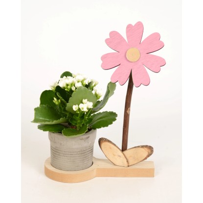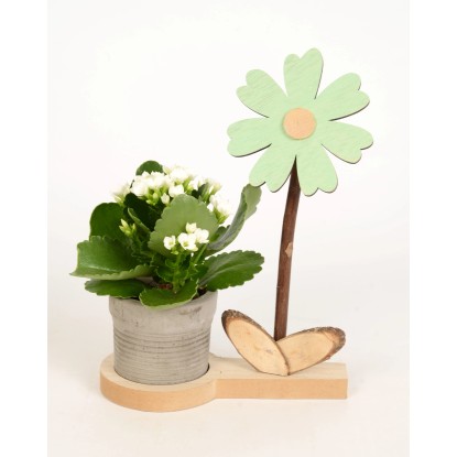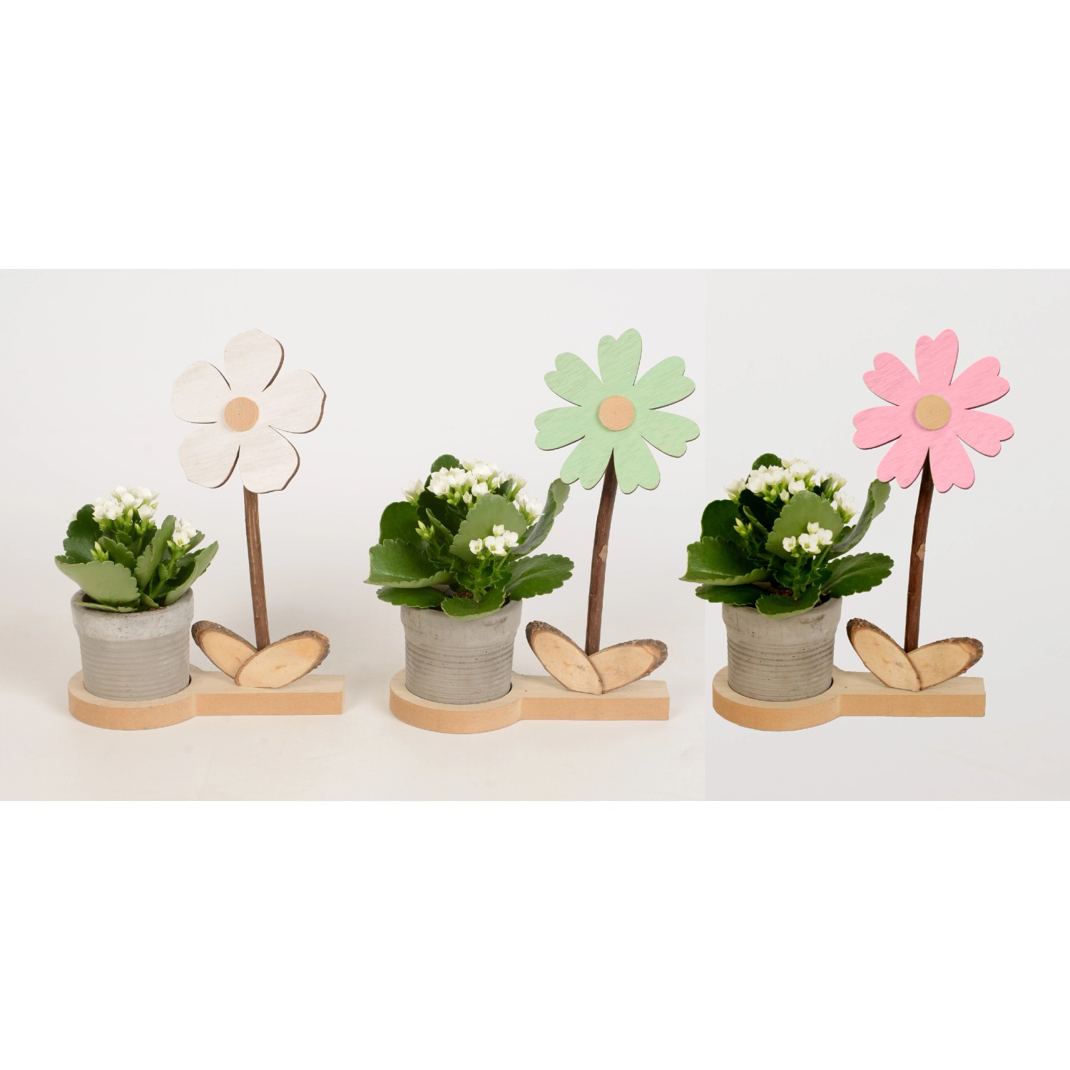 Kalanchoe Blossfeldova v drevenom kvetináči s dekoračným kvietkom cca 6 cm