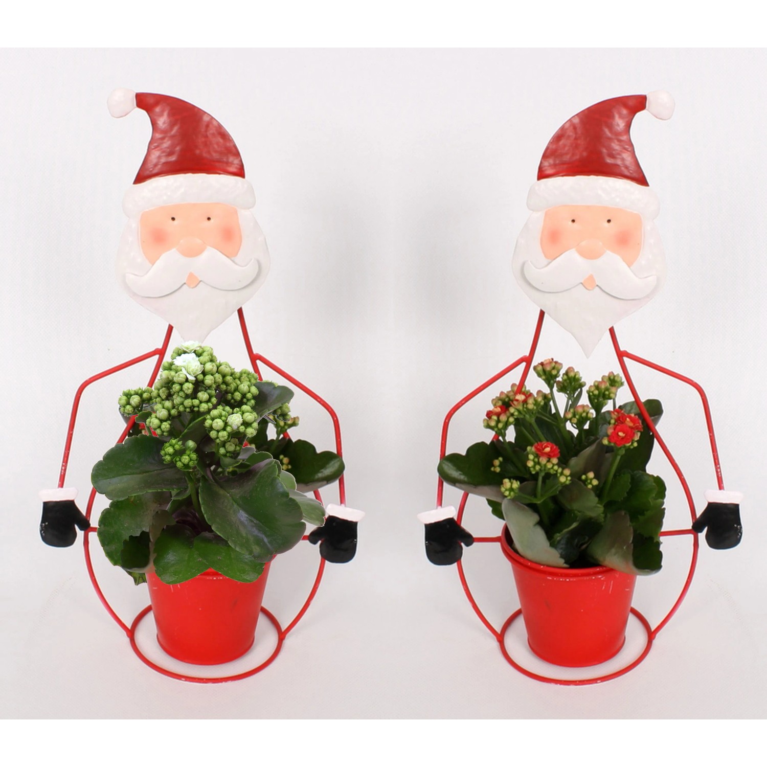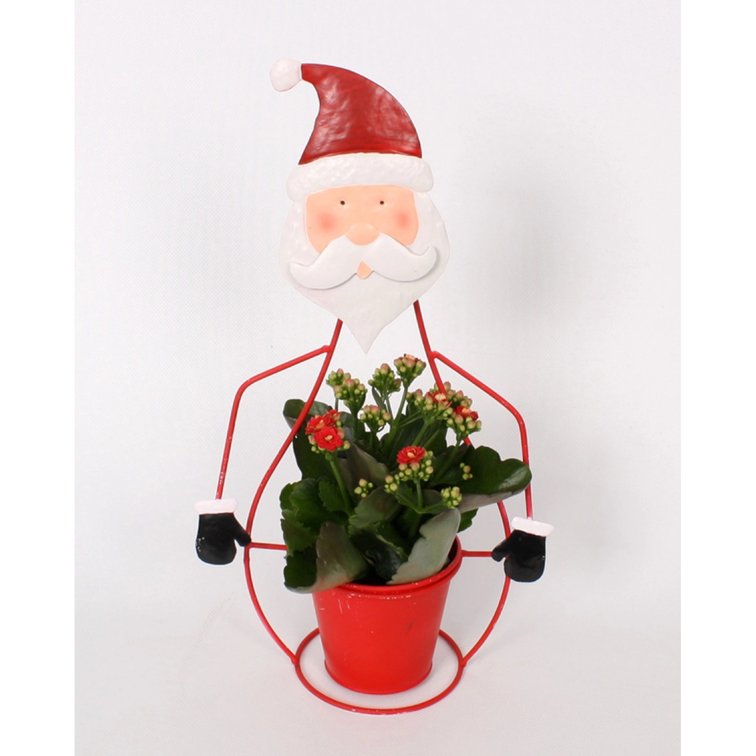 V tomto aranžmáne sa nachádza kalanchoe Blossfeldova (Kalanchoe bossfeldiana) vo vianočnom zinkovom vedierku s motívom Santa Clausa. Na výber sú červené alebo biele kvety.