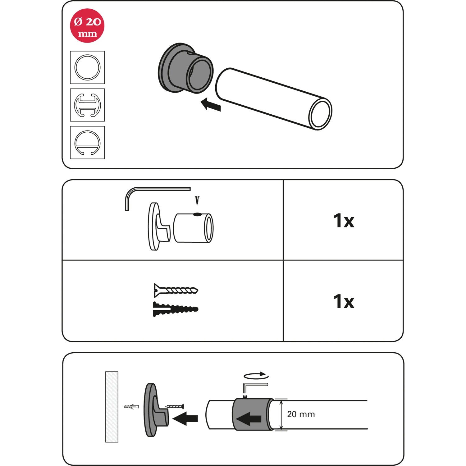 Gardinia medzistenový úchyt Chicago z kovu umožňuje montáž záclonovej tyče od steny k stene. Medzistenový úchyt s priemerom 20 mm ideálne dopĺňa štýlovú súpravu Gardinia Chicago a je v predaji vždy v zodpovedajúcej farbe.