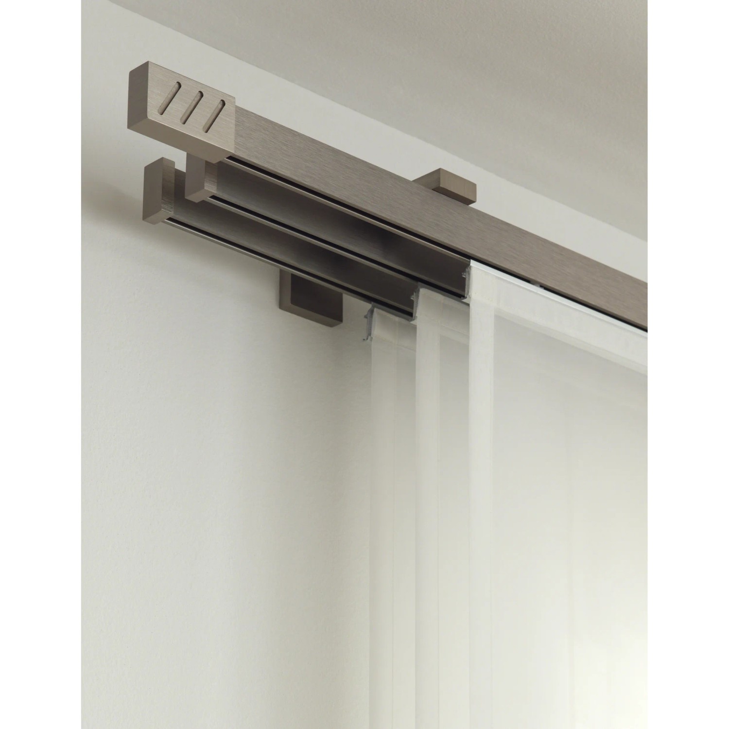 Jemná Gardinia priebežná koľajnička Luxor z hliníka alebo z brúsenej ocele je dostupná v rôznych dĺžkach. Profil na výšku so skrytou vodiacou drážkou má výšku 35 mm a hĺbku 14 mm.