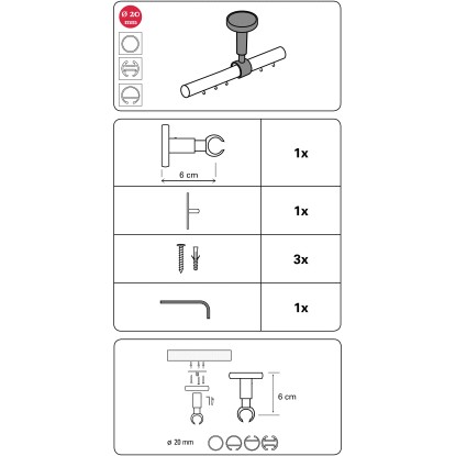 Stropný nosník je vyrobený z robustného kovu. Je vhodný na dekorácie so záclonovou tyčou alebo záclonovou tyčou s drážkou a kovovou montážnou platničkou. Na rýchlu a jednoduchú montáž je upevňovací materiál súčasťou dodávky.