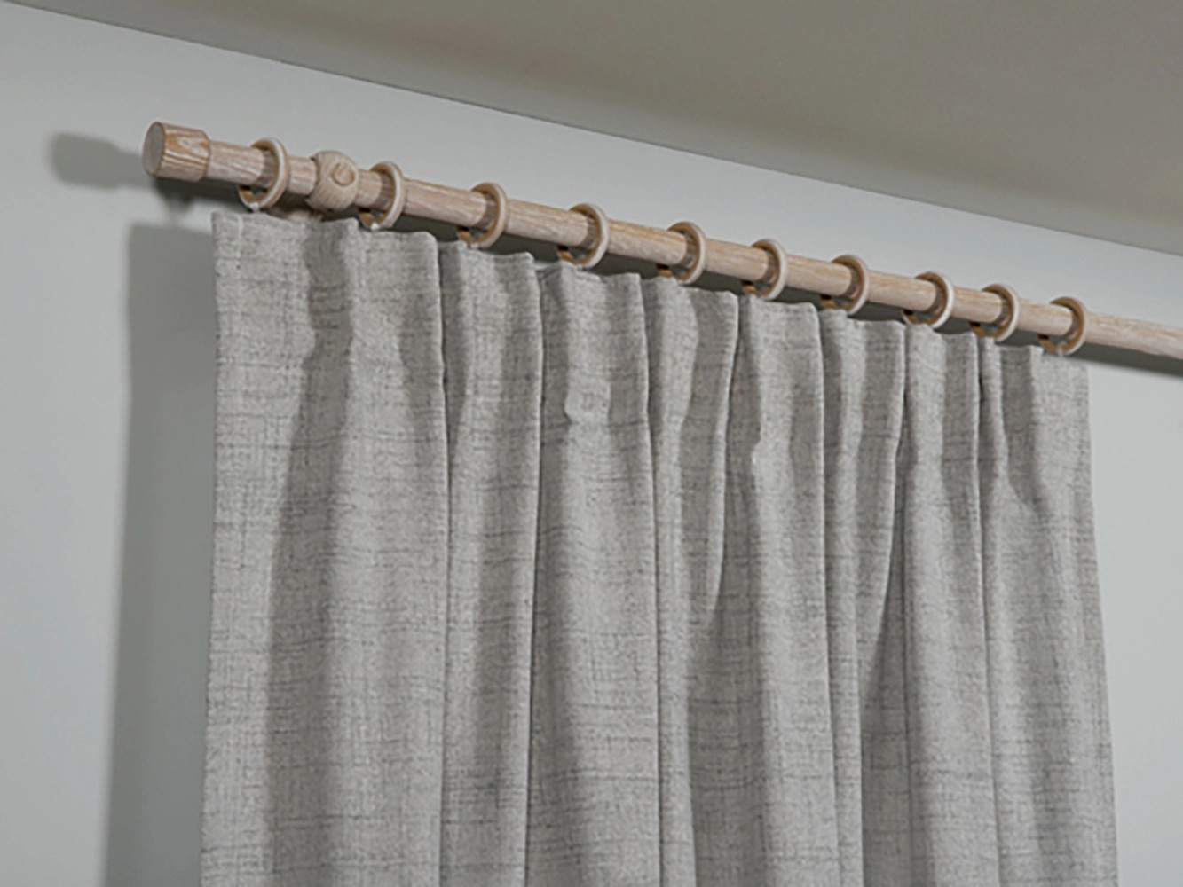 Súprava záclonovej tyče Gardinia Shorty vo vidieckom štýle je vyrobená z dreva s certifikáciou FSC a zaujme elegantným vzhľadom bieleného duba Castell. Súprava sa skladá z 1 tyče s priemerom 2,5 cm, 2 ozdobných koncoviek a príslušných držiakov. Záclonové krúžky sú k dispozícii samostatne. Držiaky je možné namontovať na stenu či strop.