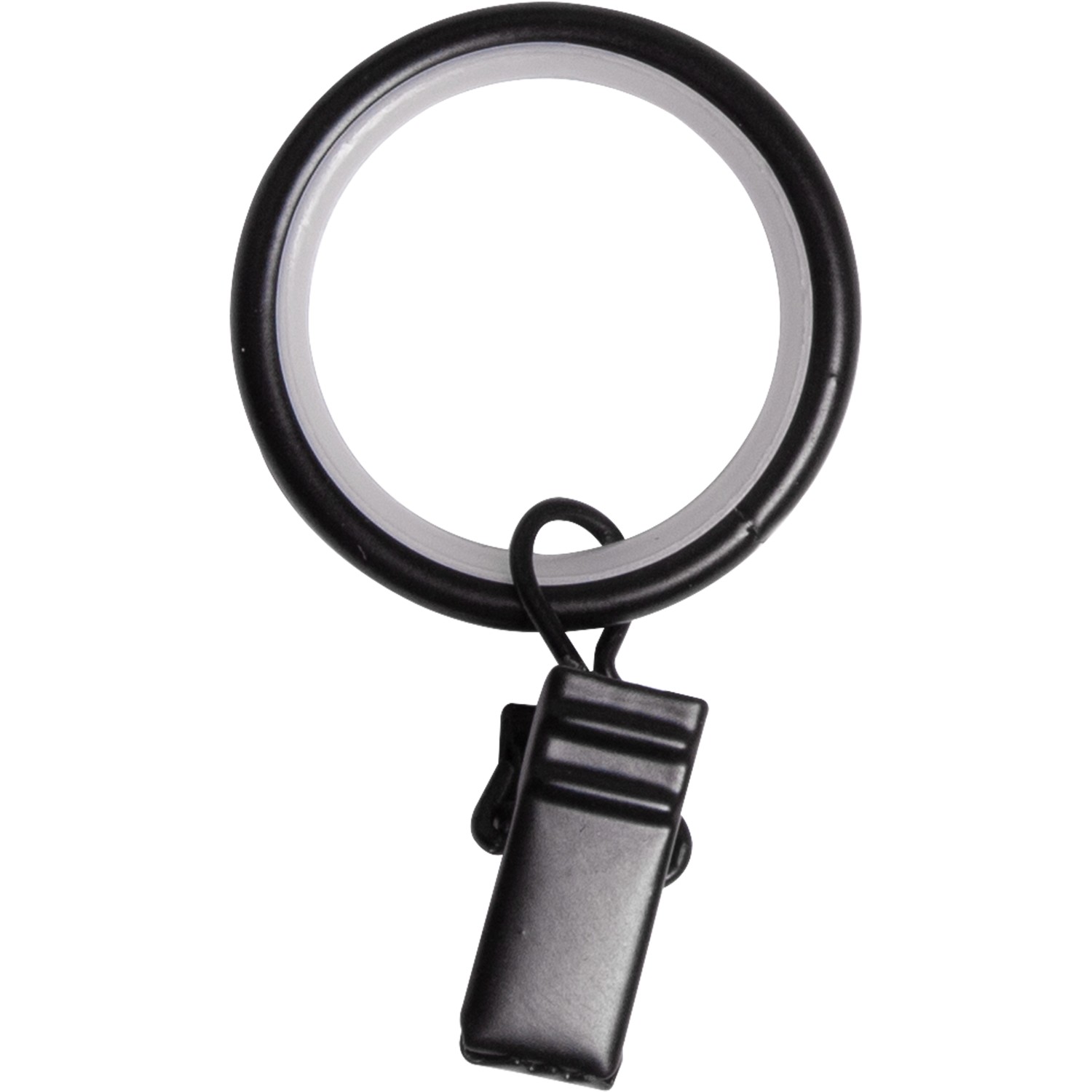 Záclonové krúžky so štipcami čierne, 10 ks, pr. 19 mm