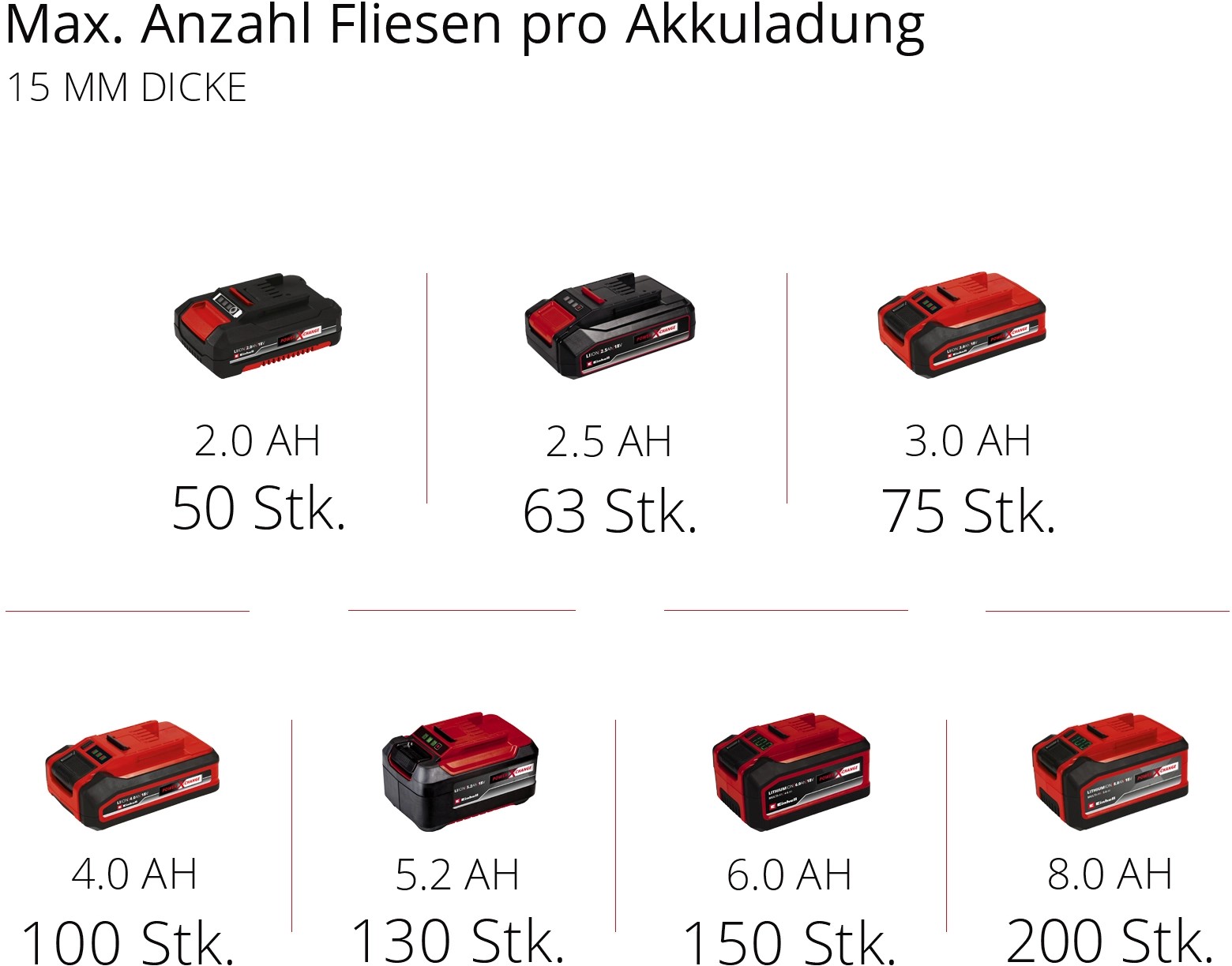 Einhell akumulátorová rezačka dlaždíc TE-TC 18/115 Li Solo je vďaka akumulátorovému pohonu z výkonného radu Power X-Change "ľahkou váhou" medzi rezačkami dlaždíc a je univerzálne flexibilne použiteľná - aj mimo elektrické zdroje, ako sú zásuvky a generátory. Akumulátory s kvalitnými lítium-iónovými článkami je možné kombinovať so všetkými prístrojmi z radu Power X-Change.