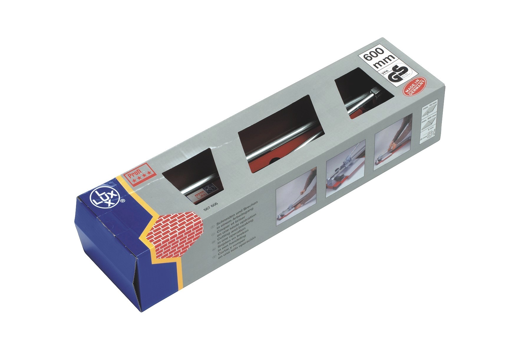 LUX-TOOLS stroj na rezanie dlaždíc obsahuje nastaviteľný uhlový doraz pre rovné a šikmé rezy. Torzne tuhá oceľová základová doska zaručuje vysokú stabilitu a rezné koliesko z tvrdokovu čisté rezy.