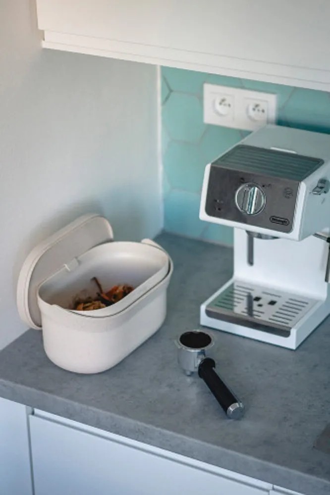 Nádoba je určená na bioodpad v kuchyni. Je ideálnym riešením pre všetkých, ktorí majú v domácnosti záhradný kompost alebo vo svojej blízkosti kontajner na bioodpad. Údržba samotnej nádoby je veľmi jednoduchá. Nádobu stačí umyť teplou vodou s kvapkou saponátu. Vybrať si môžete zo 4 farebných kombinácií a vo variantoch s prímesou alebo bez prímesí kávovej usadeniny.