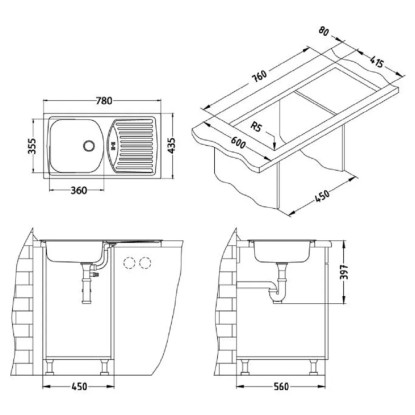 Nerezový drez Basic 150, 1 vanička s odkladacou plochou + sifón 1x 1 1/2" odtok, s bočným prepadom. K drezu nemožno pripojiť drvič odpadu, môžete napojiť umývačku alebo práčku. Vstavaný drez z potravinárskej nerezovej ocele, ktorá sa ľahko udržuje.Súčasťou balenia je drez, sifón, súprava úchytiek a nalepovacie tesnenie.Drez z výroby bez otvorov, nutné zhotoviť otvor pre batériu.