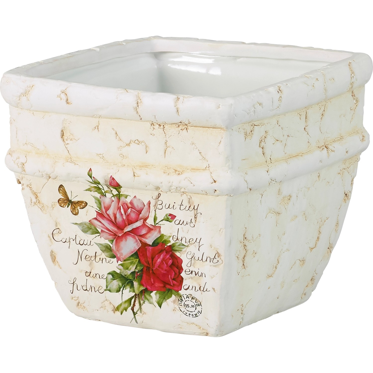 Dekoratívny kvetináč s motívom ruží 19 cm x 20 cm x 20 cm