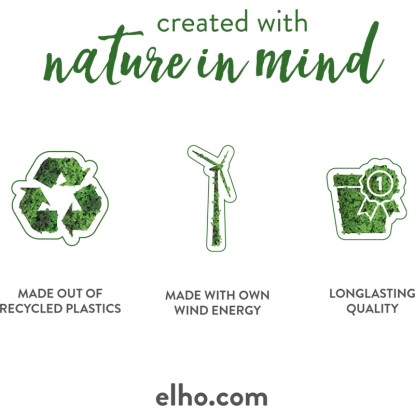 Kolekcia elho Pure sa vyznačuje predovšetkým sofistikovaným vzhľadom a elegantnými tvarmi. Kvetináče tejto kolekcie sú k dispozícii v niekoľkých farbách a veľkostiach. Kvetináče sú určené na vnútorné aj vonkajšie použitie, sú veľmi robustné a odolné voči UV žiareniu a mrazu až do -40 °C. Na použitie v exteriéri stačí vyvŕtať vyznačený otvor na odtok prebytočnej vody. Ku každému kvetináču je k dispozícii zodpovedajúca podmiska, povedzte zbohom nevzhľadným kolieskam po vode. Podmiska zaistí, že korene nebudú zahnívať.