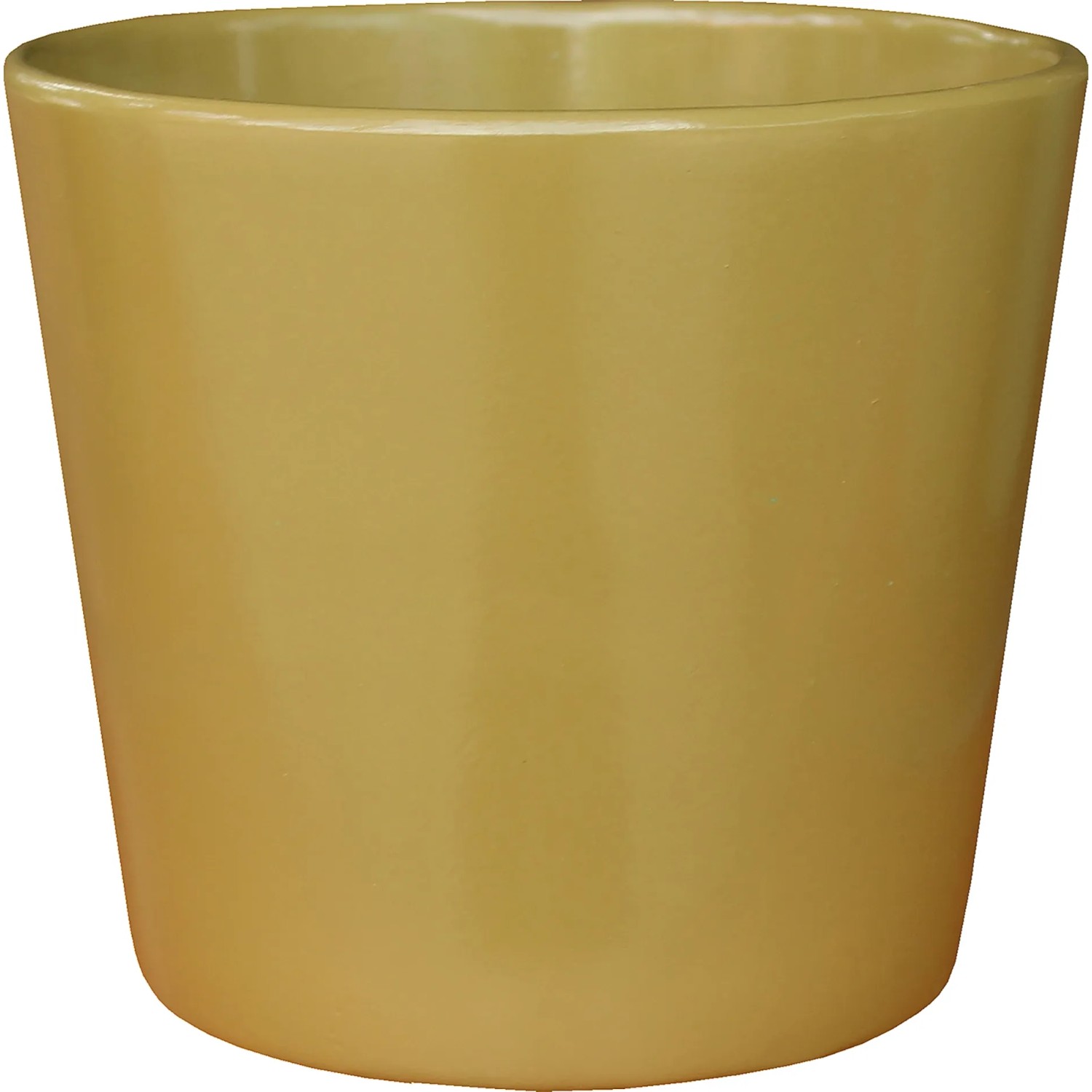 Glazovaný keramický kvetináč, horčicová, pr. 14 x 12,5 cm