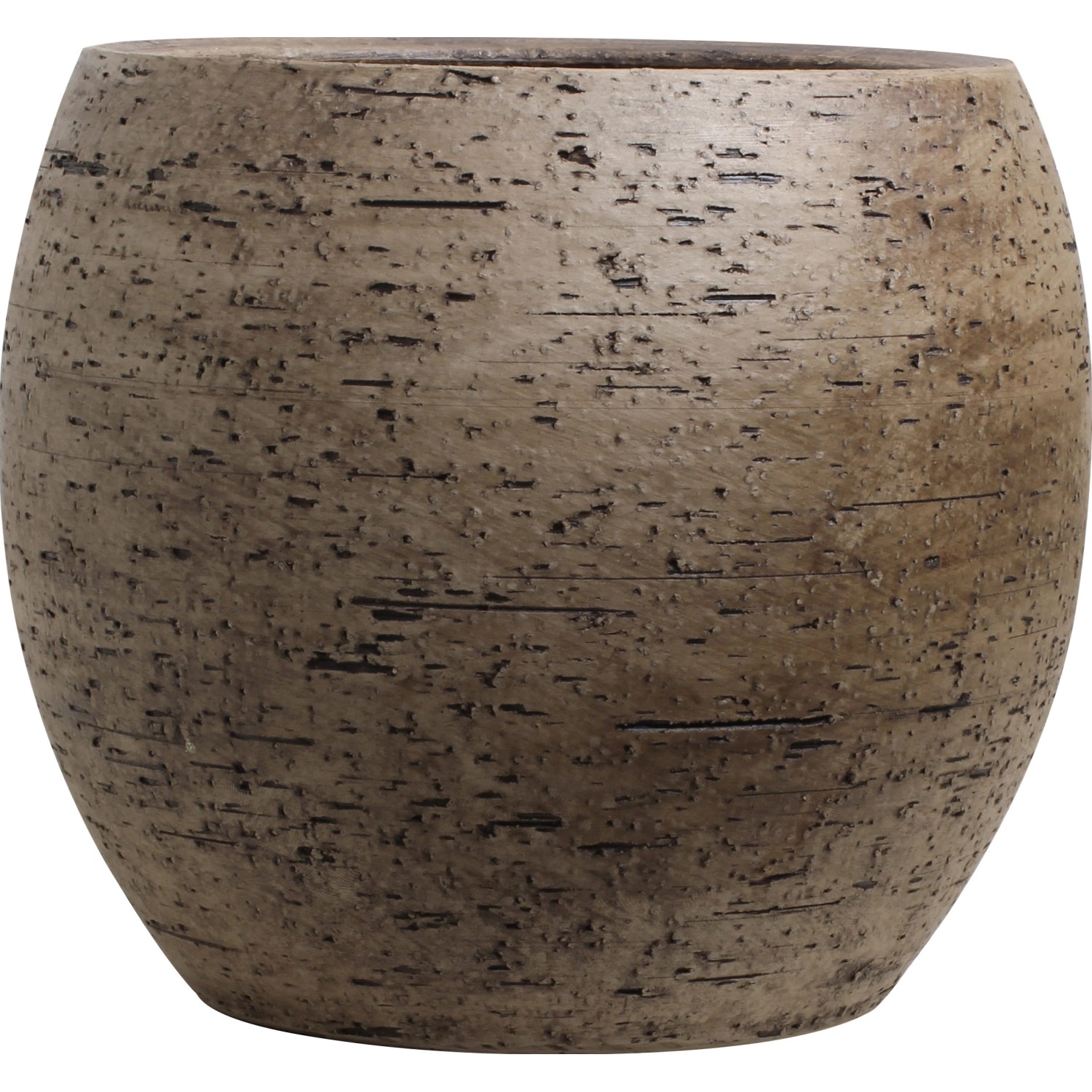 Okrúhly kvetináč je trendovou nádobou s prírodným vzhľadom. Je vodotesný a doplnený plstenými podložkami.