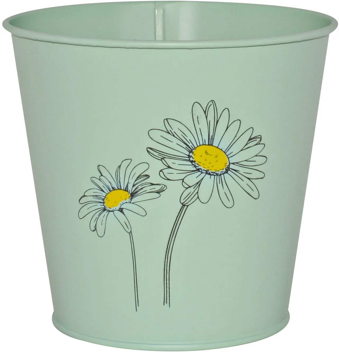 Kvetináč na bylinky lakované s potlačou, mätovo zelené, zinkový, 14,6 x 16 cm