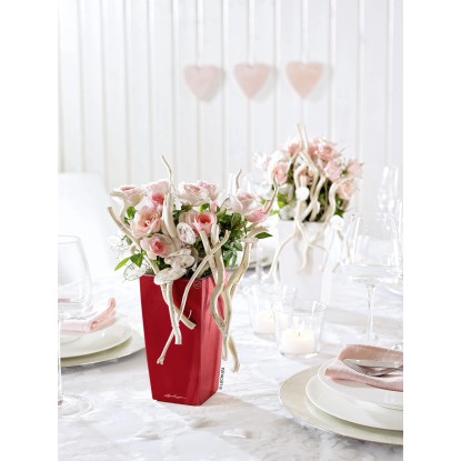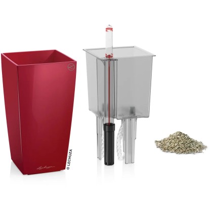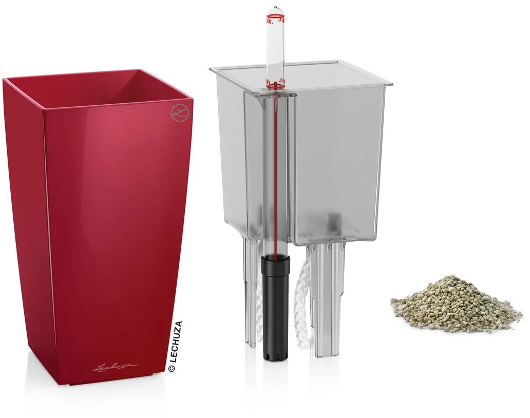 Lechuza Samozavlažovací kvetináč MINI CUBI šarlát.červ.lesk, 9,5 x 9,5 x 18,5 cm