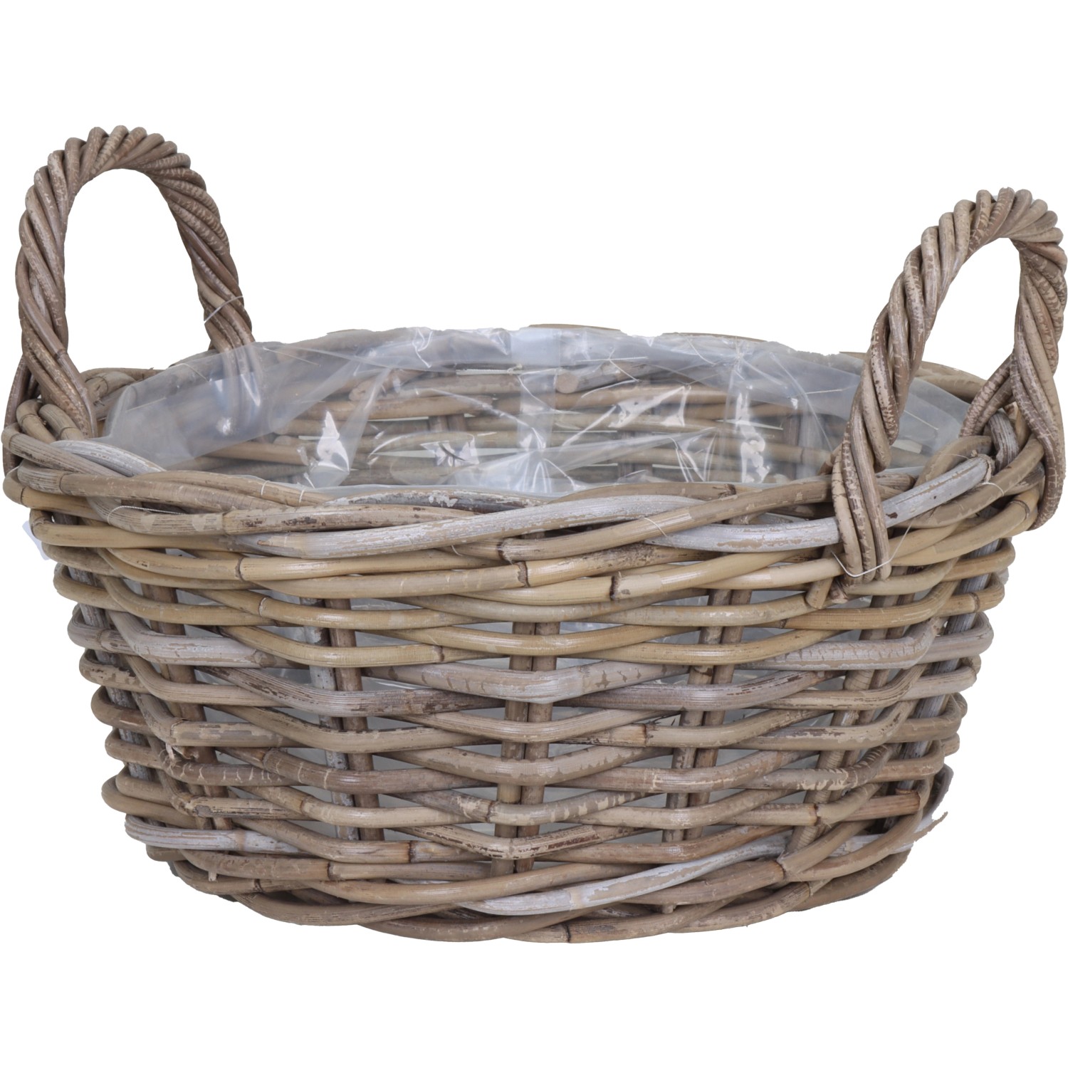 Ratanový kvetináč s PE vreckom a úchytmi prírodný sivý, 35 x 15/22 cm