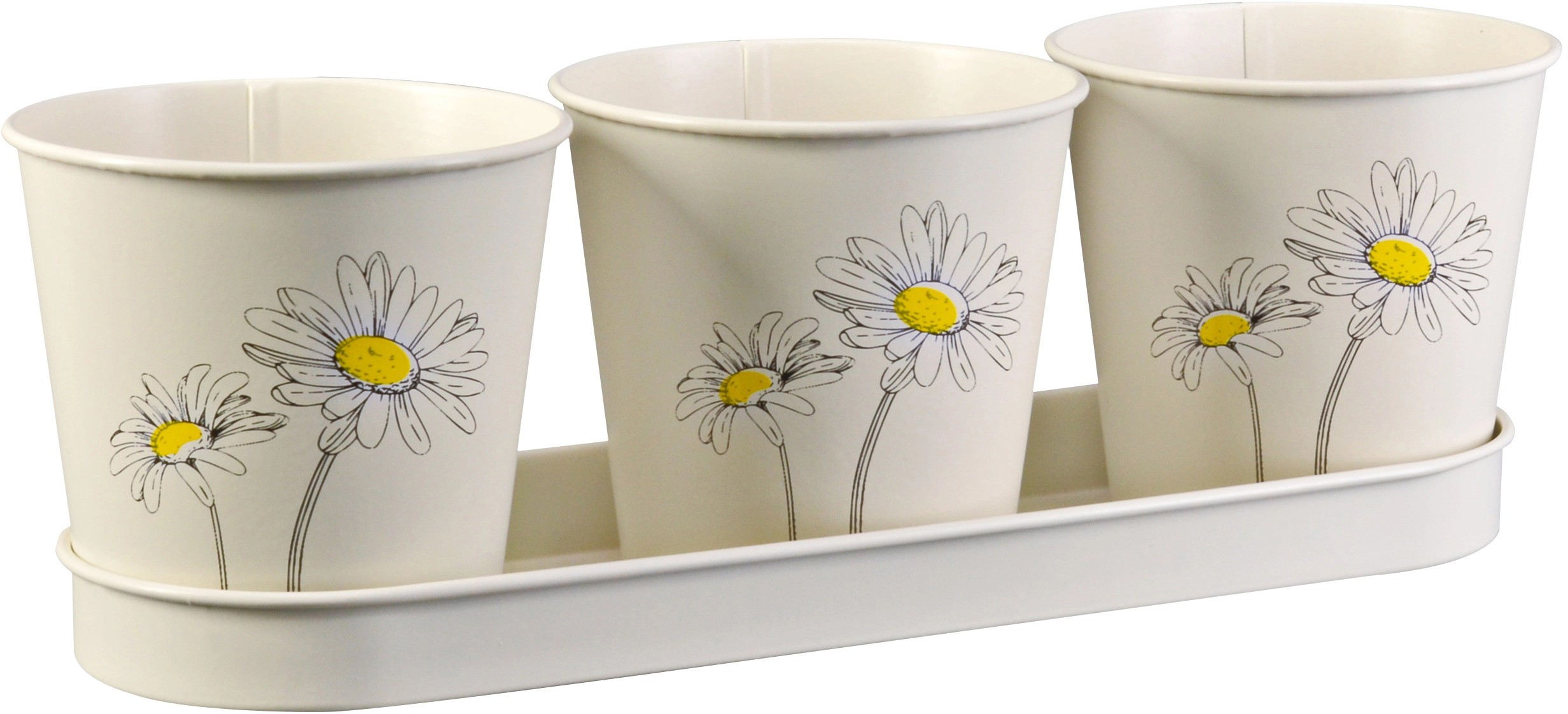 Súprava zinkového kvetináča na bylinky, kvetinová potlač, krémová, 4-dielna