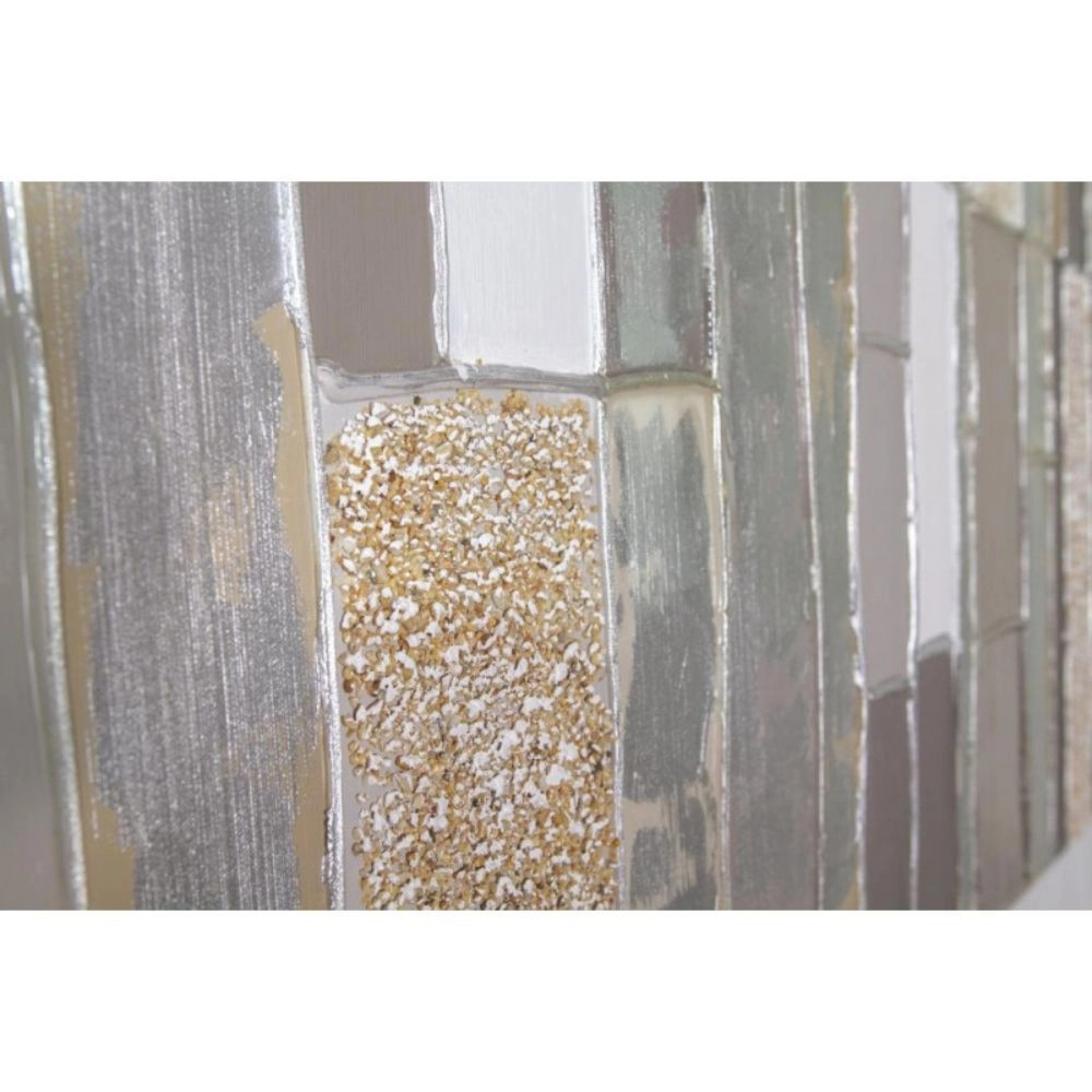 Maľovaný originál. Ručne maľovaný obraz v nadčasovej béžovej farbe so striebornými aplikáciami. Skrutky a závesy na montáž na stenu nie sú súčasťou balenia. Pre vhodnú montáž sa prosím poraďte s odborníkom.
