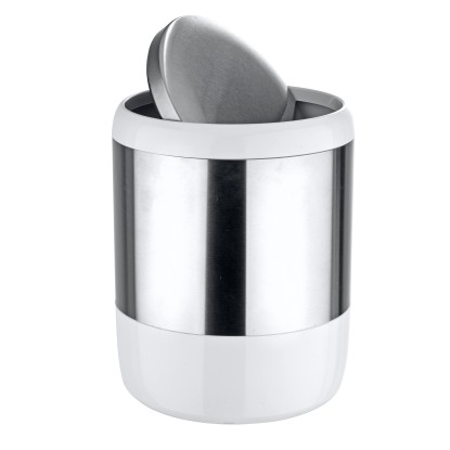 Kozmetický kôš s výklopným vekom zo série Loft má obzvlášť elegantný tvar a preto sa skvelo hodí pre rýchle a ľahké otváranie. Je vyrobený zo satinovanej nerezovej ocele v kombinácii s bielym plastom. Elegantný hladký povrch umožňuje rýchle a ľahké čistenie.