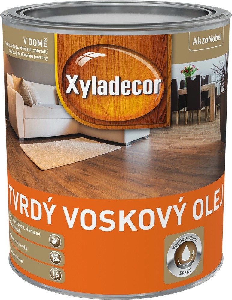 Xyladecor tvrdý voskový olej je vysoko prémiový olej na parkety na vodnej báze, odolný proti opotrebovaniu a poškriabaniu, s extra voskom pre vodoodpudivý efekt. Vhodný na drevené podlahy, parkety a schodiská. Možno aplikovať aj na nábytok a do kúpeľní. Vyživuje drevo.