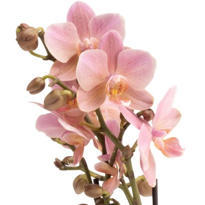GROW by OBI orchidea motýľokvetá Kolibri Treviso Phalaenopsis má kvety staroružovej farby, ktoré sa príliš často nevidia. Pysk tejto orchidey je jemne žltý a okrem toho je mierne kropenatý, čo rastline dodáva zvláštne kúzlo.