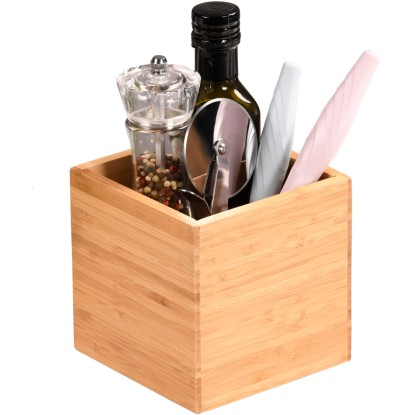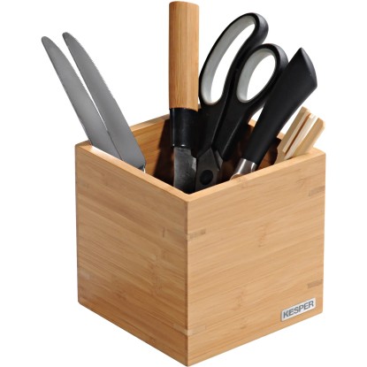 Tento skladovací box KESPER je ideálny na uloženie príborov, ale využiť ho môžete aj na uloženie kancelárskych potrieb, ako sú ceruzky, perá a ďalšie. Je vyrobený z prírodného bambusu s certifikáciou FSC.