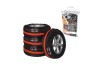 Sada 4 poťahov na pneumatiky je určená na sezónne uskladnenie kolies a pneumatík o veľkosti 13-17 palcov. Poťahy sú vhodné ako na skladovanie pneumatík vrátane diskov, tak aj na ich pohodlný transport - bez rizika zamazania rúk alebo zašpinenia interiéru vozidla pri prevážaní. Každý návlek je opatrený prehľadným symbolom, ktorý uľahčuje označenie pozície kolesa na vozidle, takže pri ďalšej výmene vždy viete, kam bicykel patrí. Táto praktická sada vám umožní bezpečné, čisté a prehľadné uskladnenie pneumatík, a zároveň uľahčí ich manipuláciu aj prevoz.