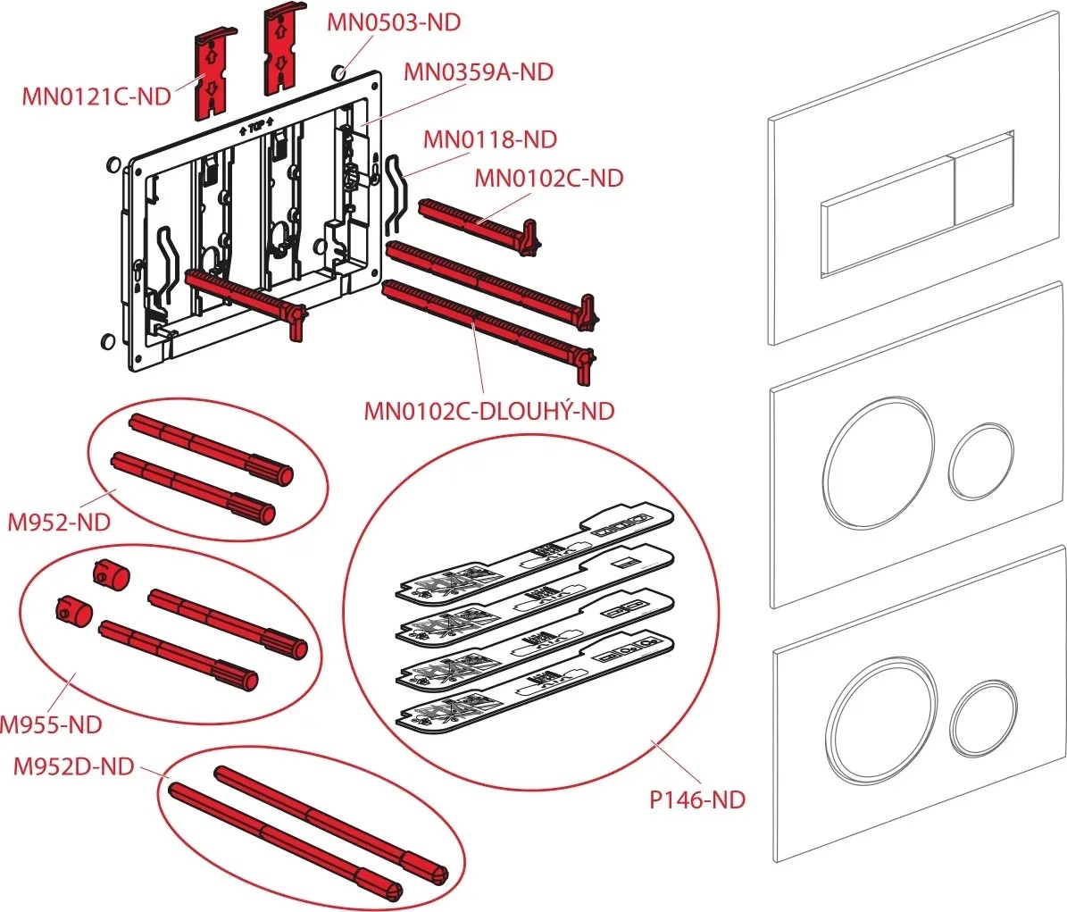 - Upevňovací rámček tlačidla