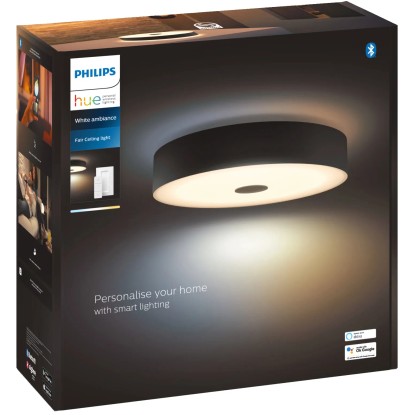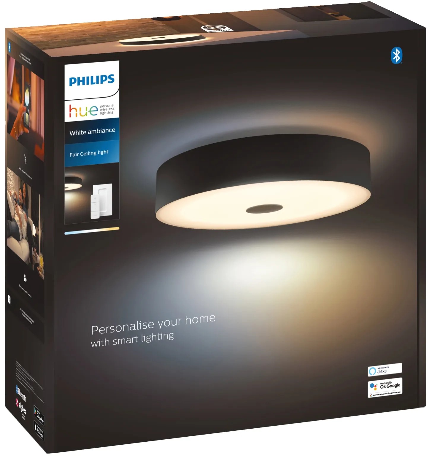 Svietidlo Philips Hue White Ambiance Fair je prisadené LED stropné svietidlo s nastavením chromatičnosti od teplej bielej až po studenú bielu, prednastavených svetelných scén a funkcií stmievania. Svietidlo je ovládateľné pomocou vypínača Philips Hue Dimmer Switch (súčasťou balenia), cez Bluetooth aplikáciu alebo cez aplikáciu so systémom Philips Hue Bridge.