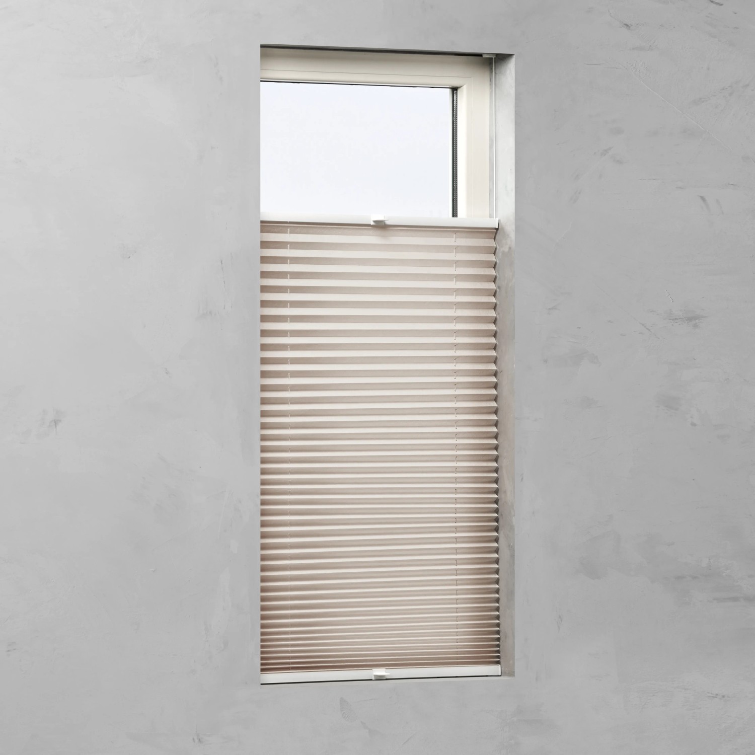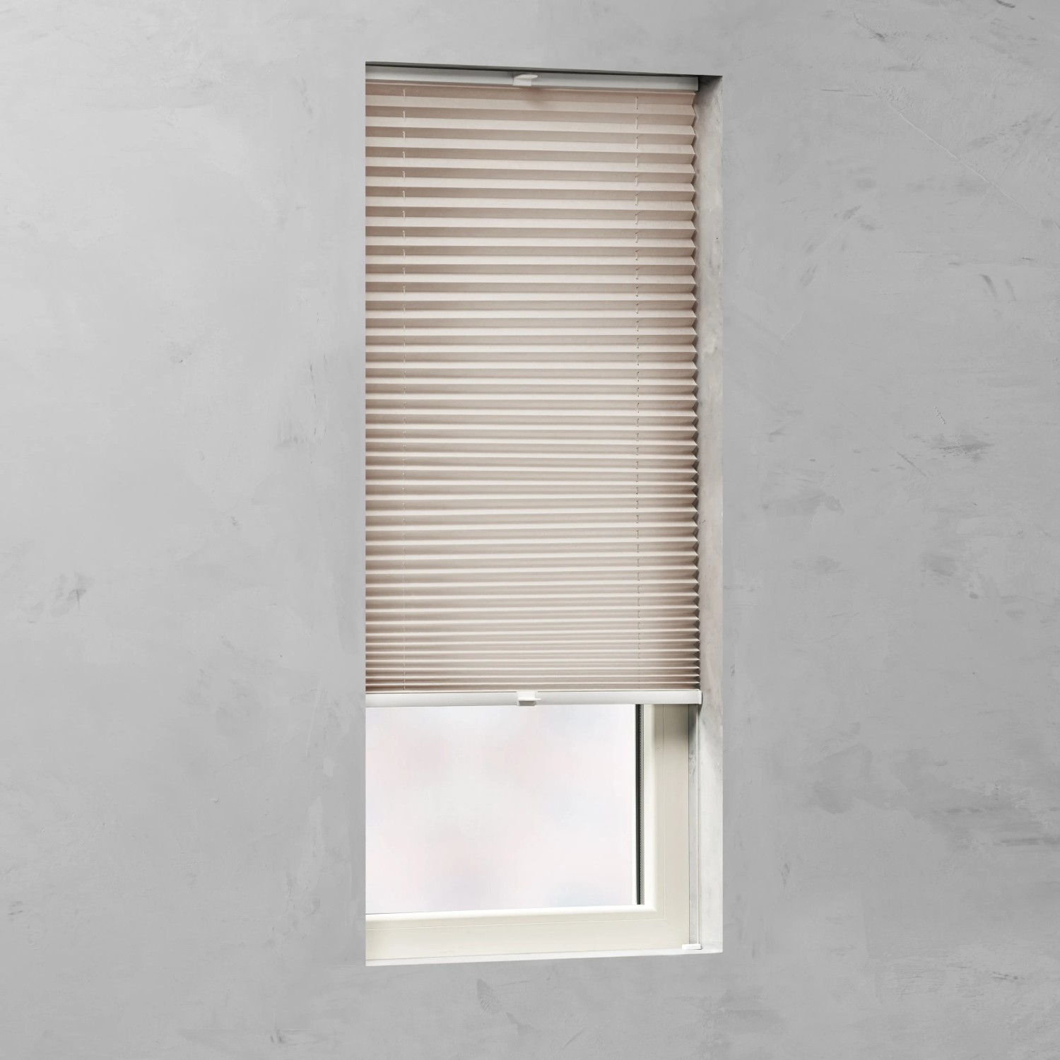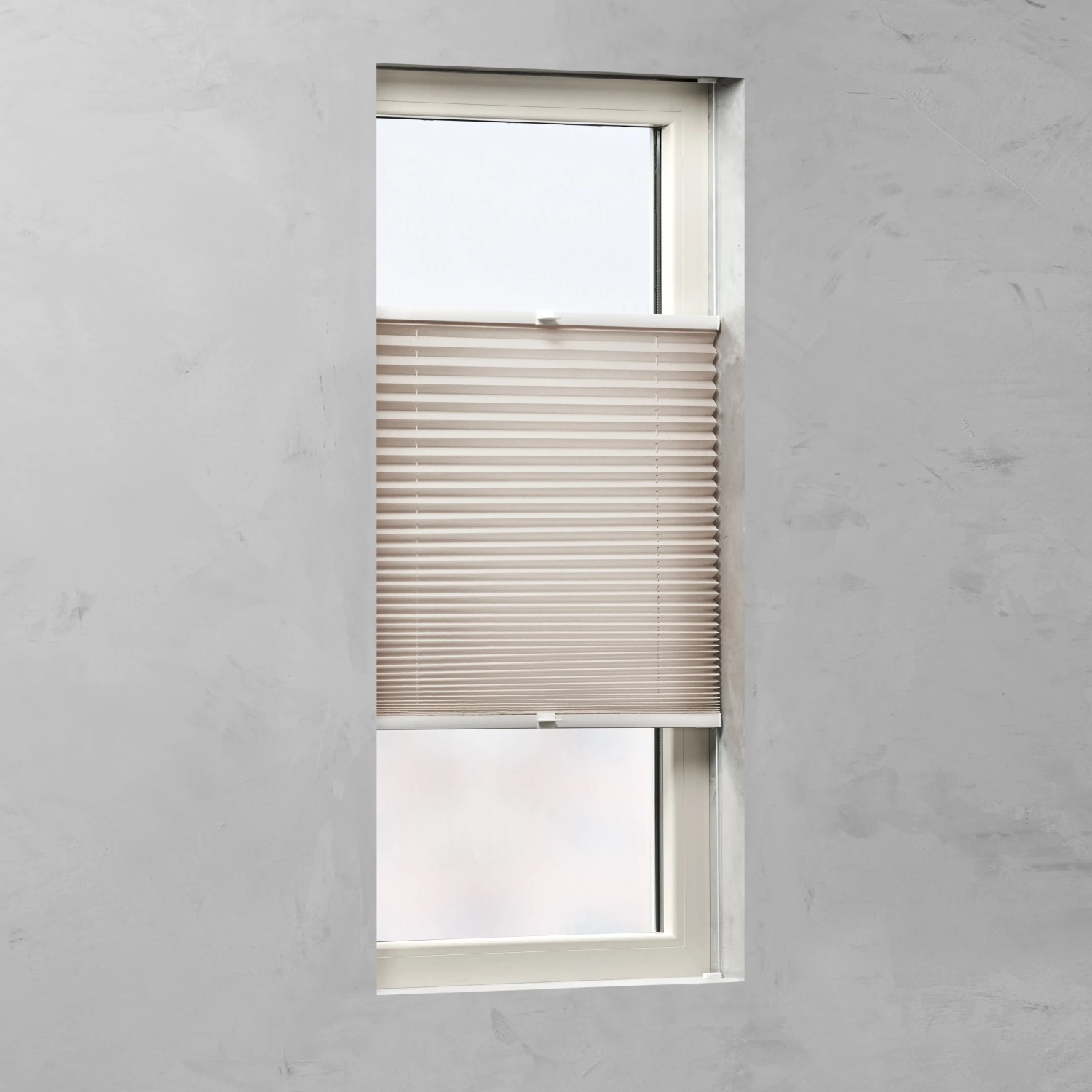 Látka skladanej žalúzie je vyrobená zo 100 % polyesteru a je preto odolná proti vlhkosti a vyčistíte ju mimoriadne jednoducho navlhčenou handričkou.
