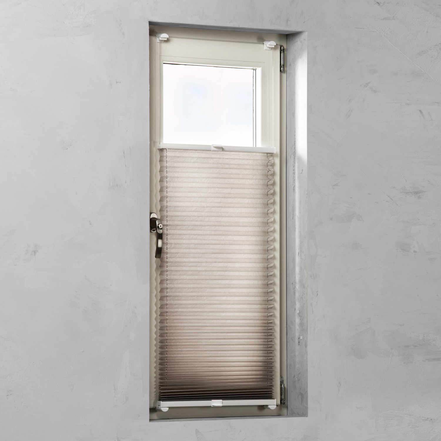 Skladaná žalúzia plisé vás presvedčí jednoduchou montážou pomocou spôn a stane sa dekoračným riešením pre rôzne miestnosti. Plynulo nastaviteľná plisé žalúzia je zhotovená z jemne štruktúrovanej látky a možno ju použiť ako ochranu pred slnkom a neželanými pohľadmi.