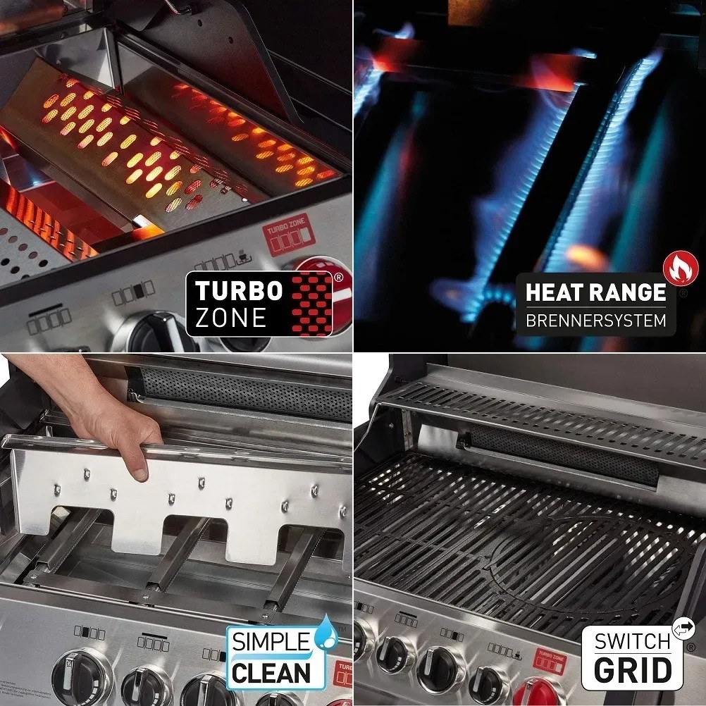 TURBO ZÓNA dosahuje extra vysoké teploty takmer okamžite, stačí otočiť gombíkom a grilovanie môže začať. Pokiaľ TURBO ZÓNU nepoužívate jednoducho ju môžete zakryť a použiť ako odkladací priestor.