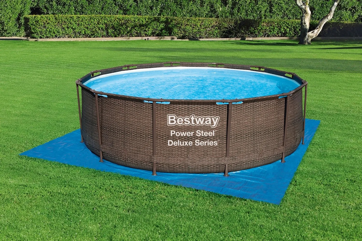 Podložky pod bazény Bestway sú vyrobené z kvalitného PE materiálu - robustného polyetylénu, ktorý je nielen pevný, ale aj vysoko odolný. Má modrú farbu. PE podložka ponúka spoľahlivú ochranu bazéna proti prepichnutiu, poškriabaniu a ďalšiemu inému poškodeniu, čo predlžuje životnosť vášho bazéna, ale tiež chráni trávnik pred nevzhľadnými škvrnami od chlóru.