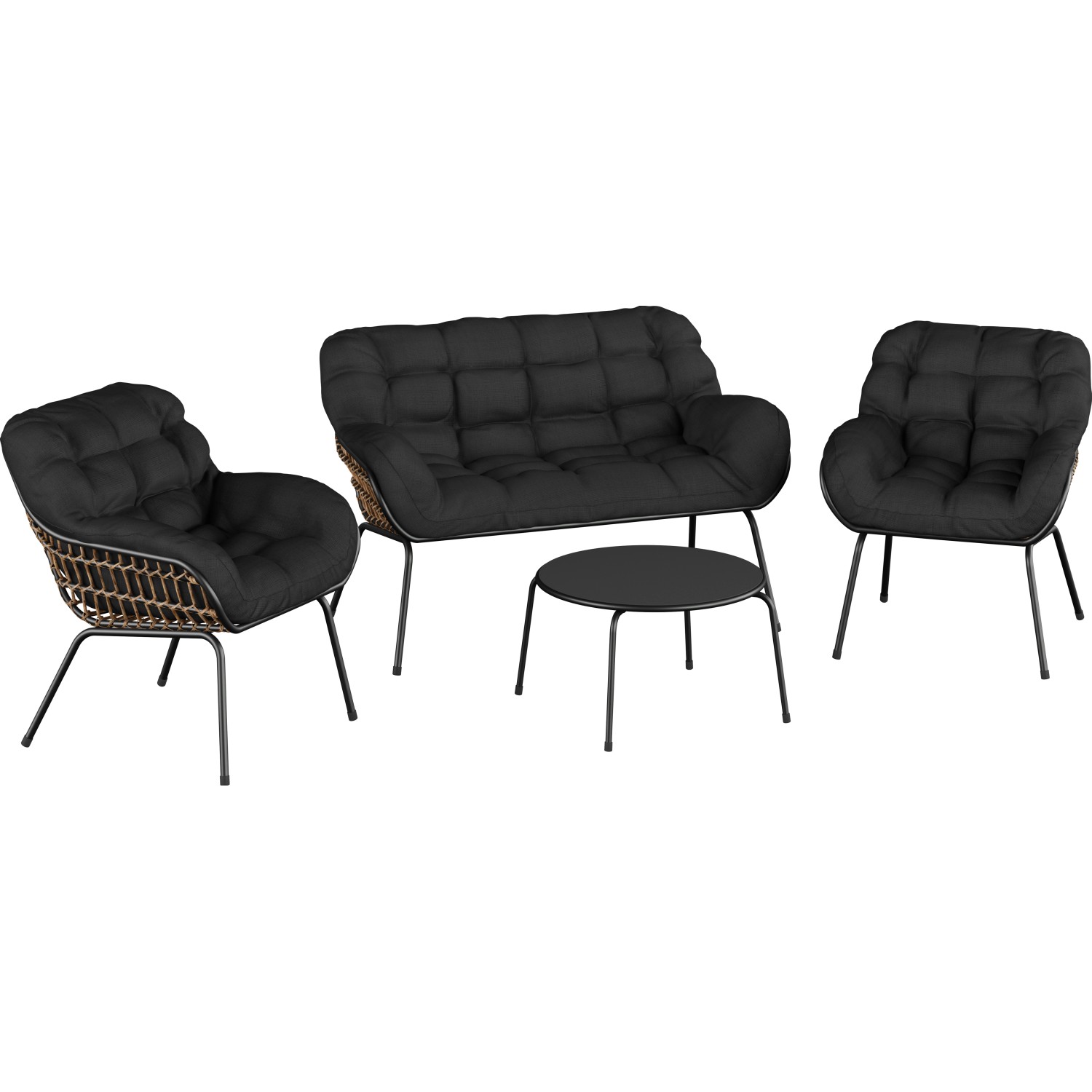 Lounge zostava Cultana s konferenčným stolíkom oceľ/prútie, 4dielna