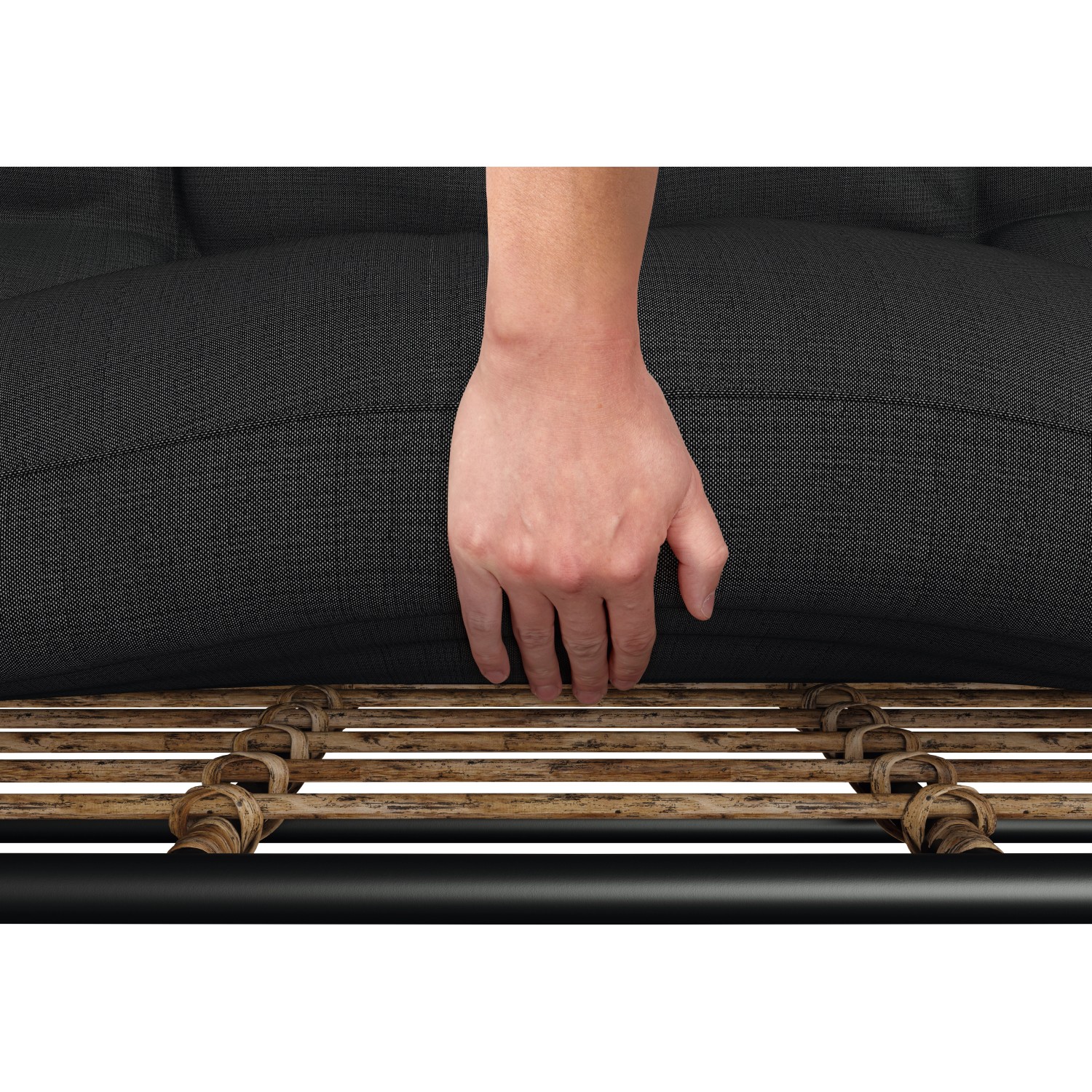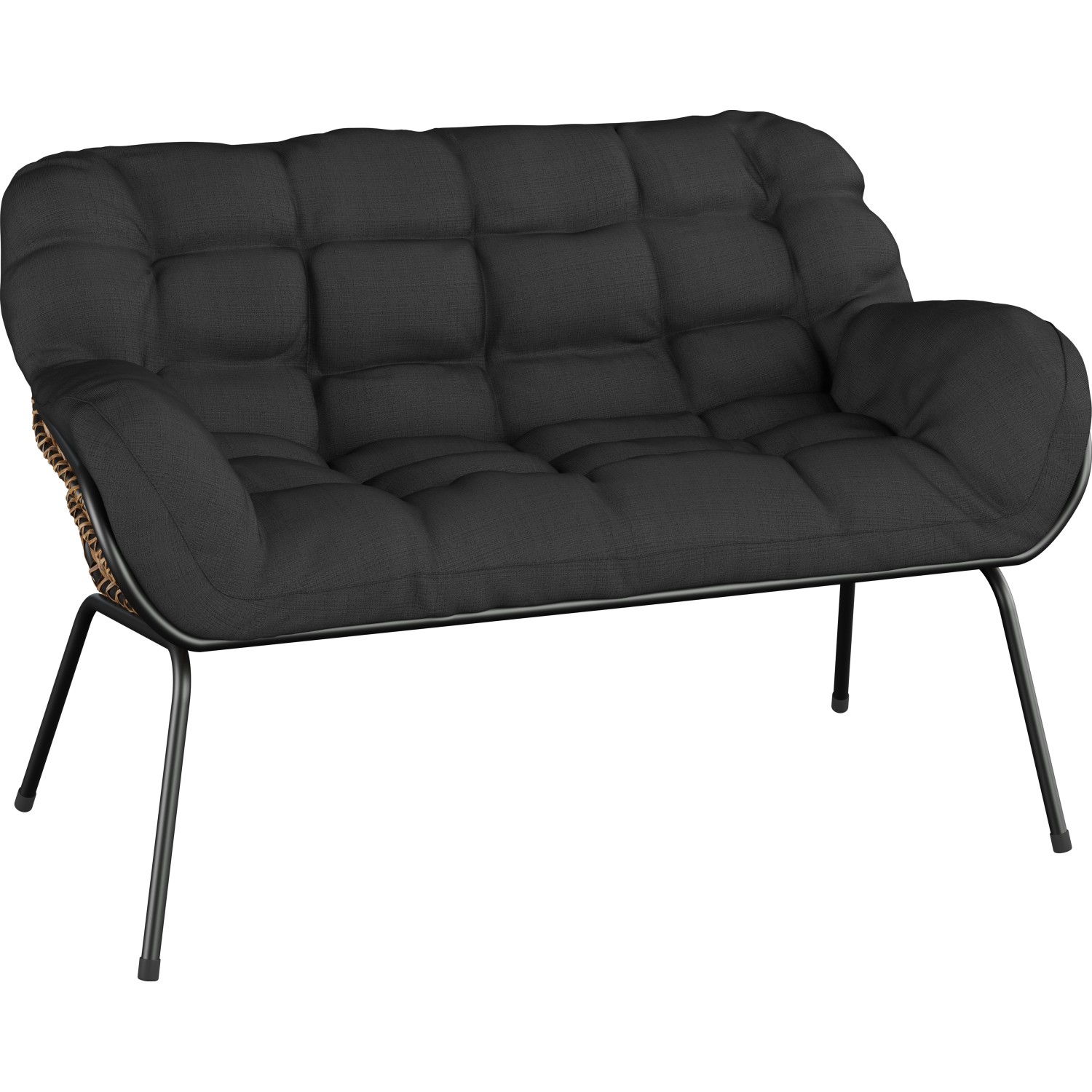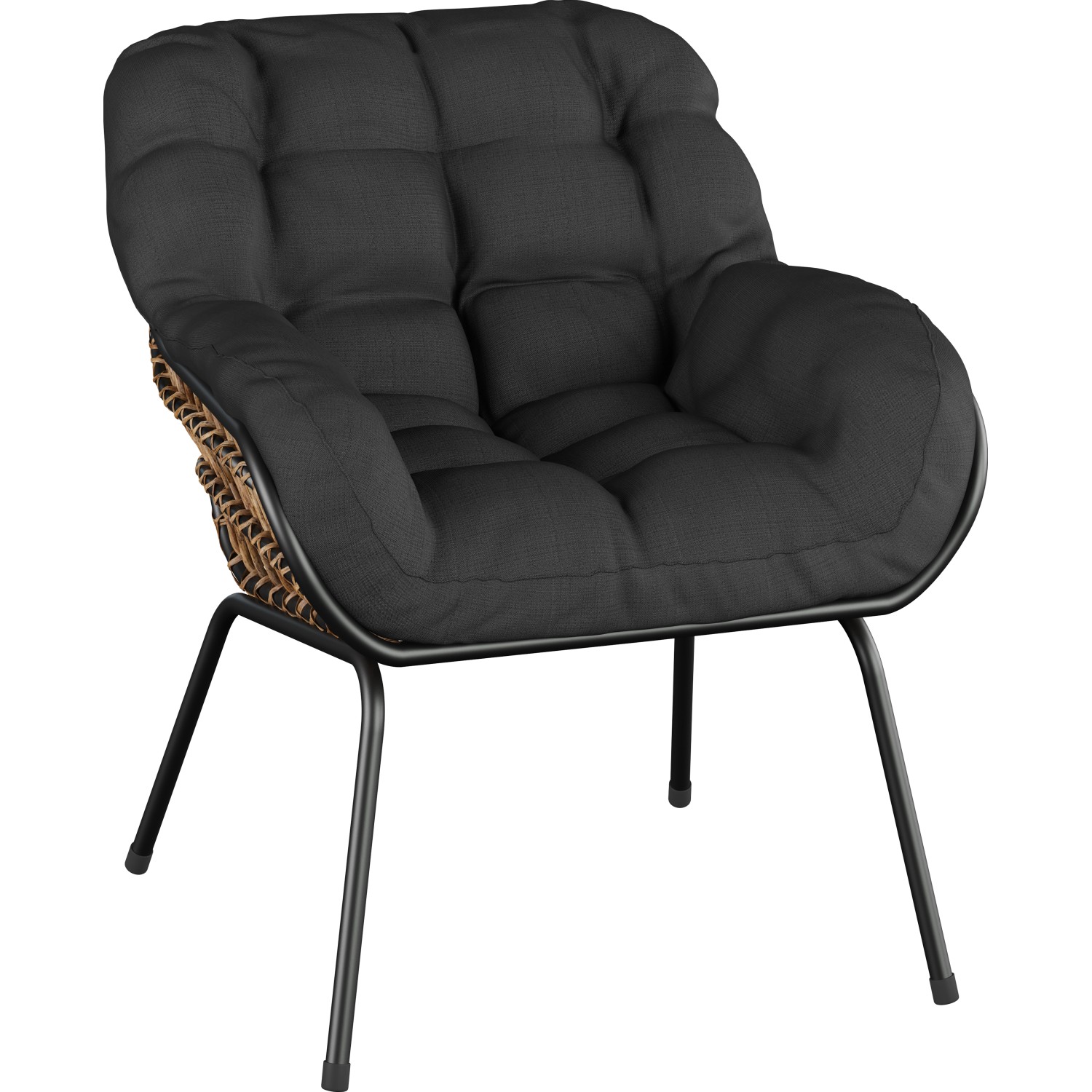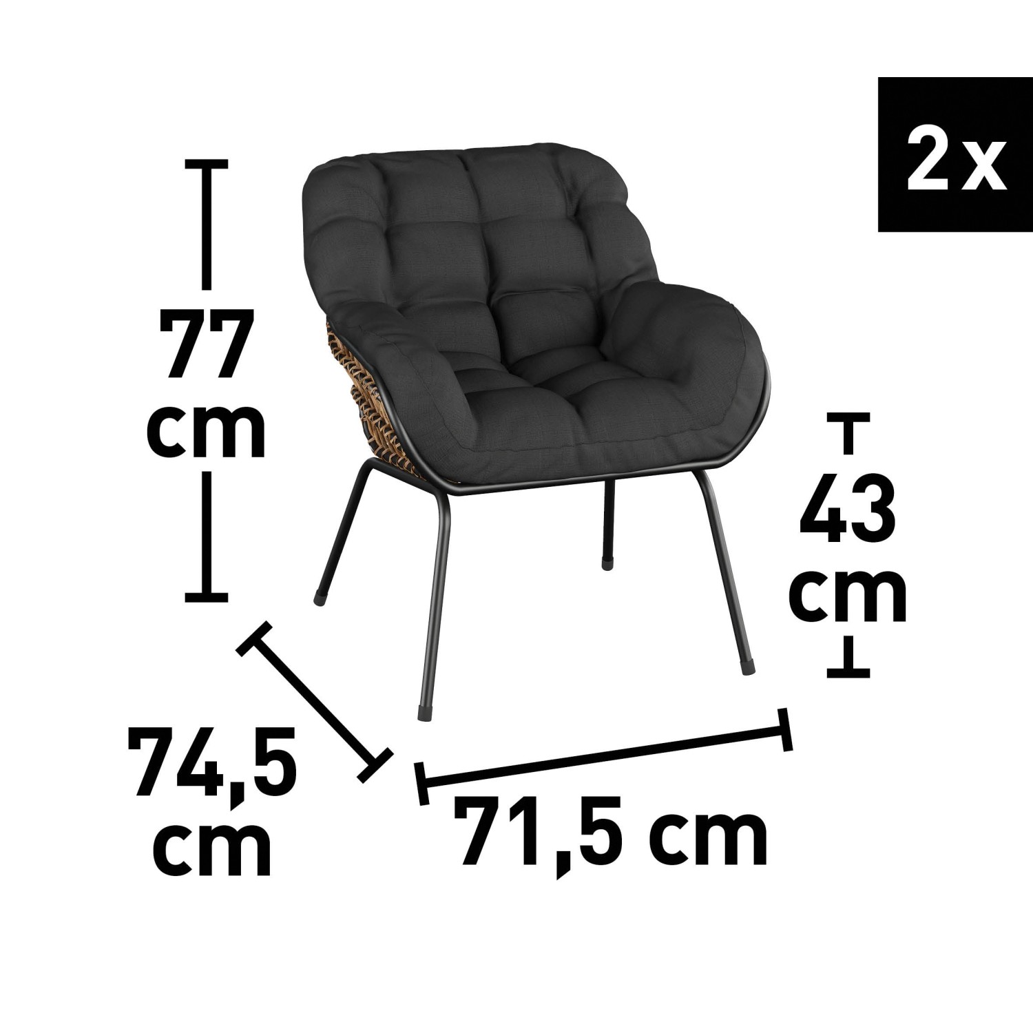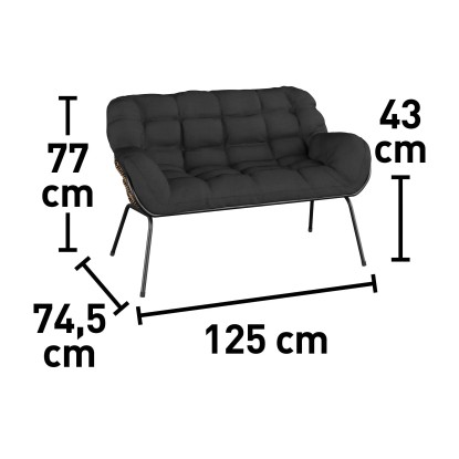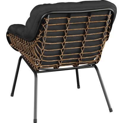 Záhradný nábytok je vyrobený z ručne vypletaného prútia s veľkými okami v prírodnej farbe. K tomu je kombinovaná konštrukcia z okrúhlej oceľovej rúrky antracitovej farby, ktorá vytvára bezpečnú základňu. Použité materiály sa vyznačujú dlhou životnosťou a odolnosťou. Pohodlie zaisťujú priložené polstre antracitovej farby, ktoré zodpovedajú tvaru sedacieho nábytku. Sú opatrené atraktívnym prešívaním, ktoré zároveň držia tvar výplňového materiálu.