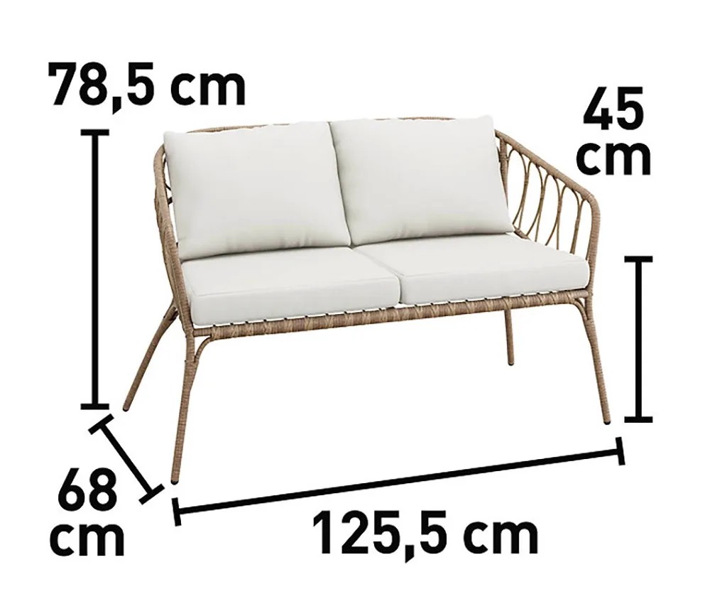 - Dvojmiestna pohovka (V x Š x H): 78,5 x 125,5 x 68 cm