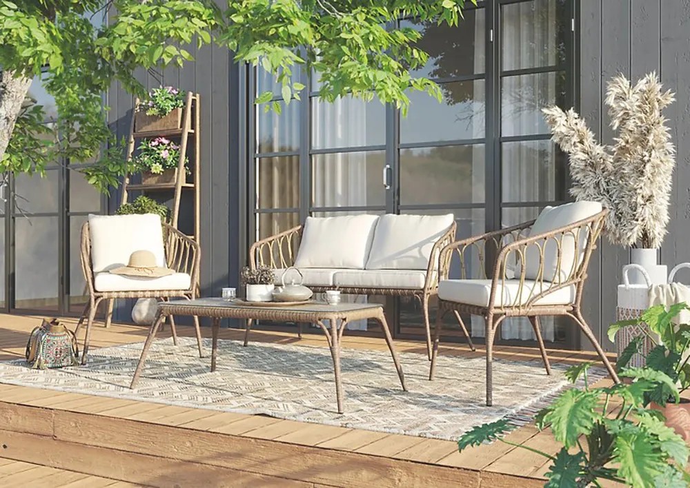 Lounge zostava s konferenčným stolíkom Gordonvale, béžová, polyratan *