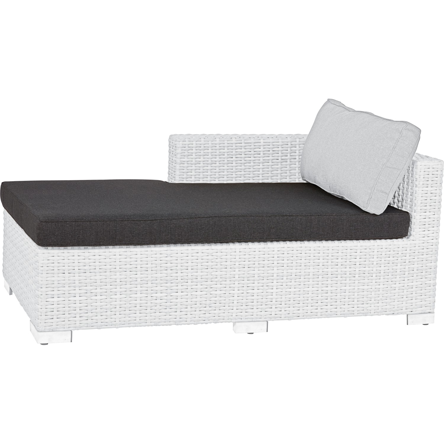 Tmavosivý náhradný sedací vankúš slúži ako sedacia podložka pre Récamiere pohovku 3-dielnej sedacej súpravy Studley z polyratanu s ľavým a pravým vyhotovením. Umožní v prípade potreby výmenu opotrebovanej sedacej podložky. Príjemne mäkká výplň vankúša sa skladá z 15 % polyesterových vlákien a 85 % PU peny. Zmes presviedča mimoriadnou tvarovou stabilitou. Poťah zo 100 % polyesteru sa vyznačuje dobrými vlastnosťami čistenia. Celkové rozmery sedacieho vankúša sú 148 cm x 89 cm x 10 cm (V x Š x H).