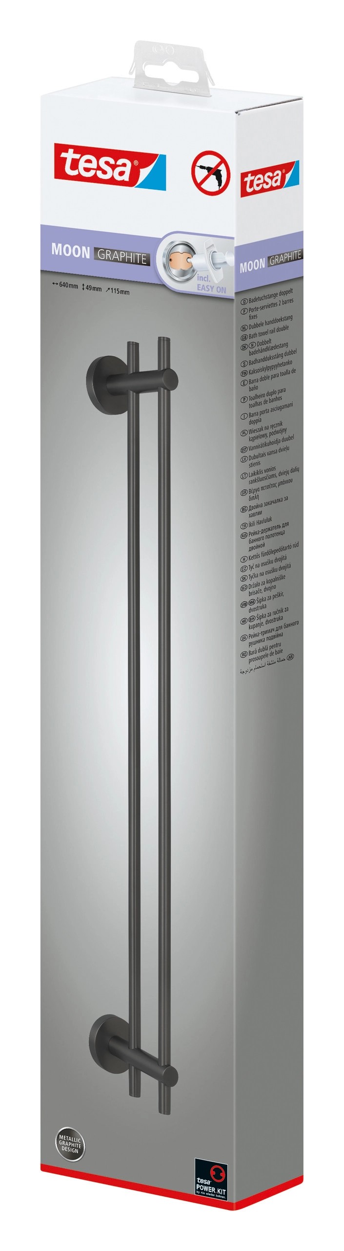 tesa Dvojitá tyč na osušku Moon, grafitová, 49 x 640 x 115 mm