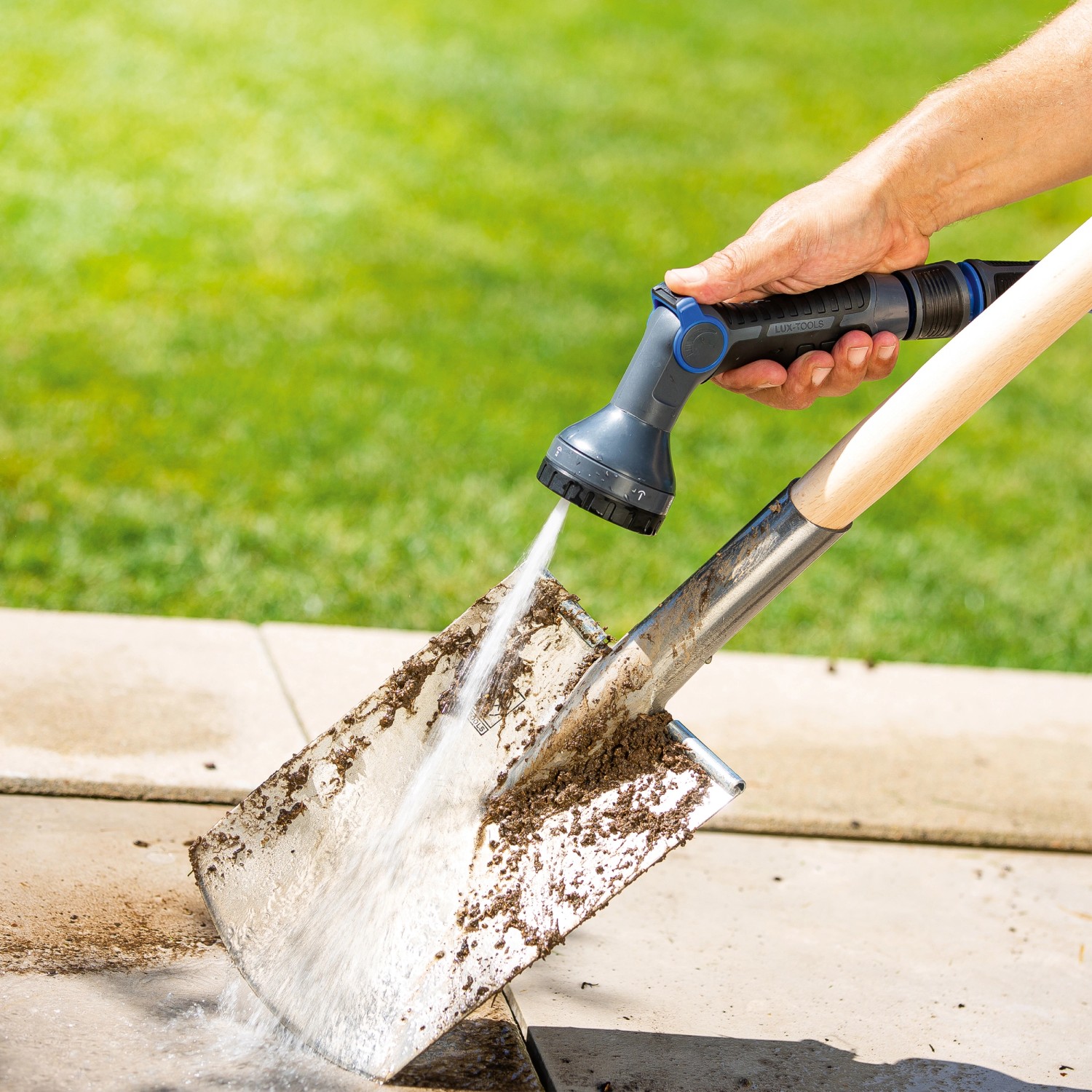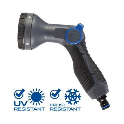LUX-TOOLS Multifunkčná záhradná sprcha je nenahraditeľné príslušenstvo pre vašu záhradu a presvedčí univerzálnymi možnosťami použitia. Hodí sa na šetrné a plošné zavlažovanie záhonov a trávnatých plôch a tiež na postrekovanie rastlín alebo čistenie terasových dlaždíc. Typ prúdu a intenzitu prúdu môžete ľahko regulovať rukou. Sprcha je vybavená piatimi funkciami vodného lúča, ako je hmla, sprcha a plný prúd vody, ktoré je možné plynule nastaviť.