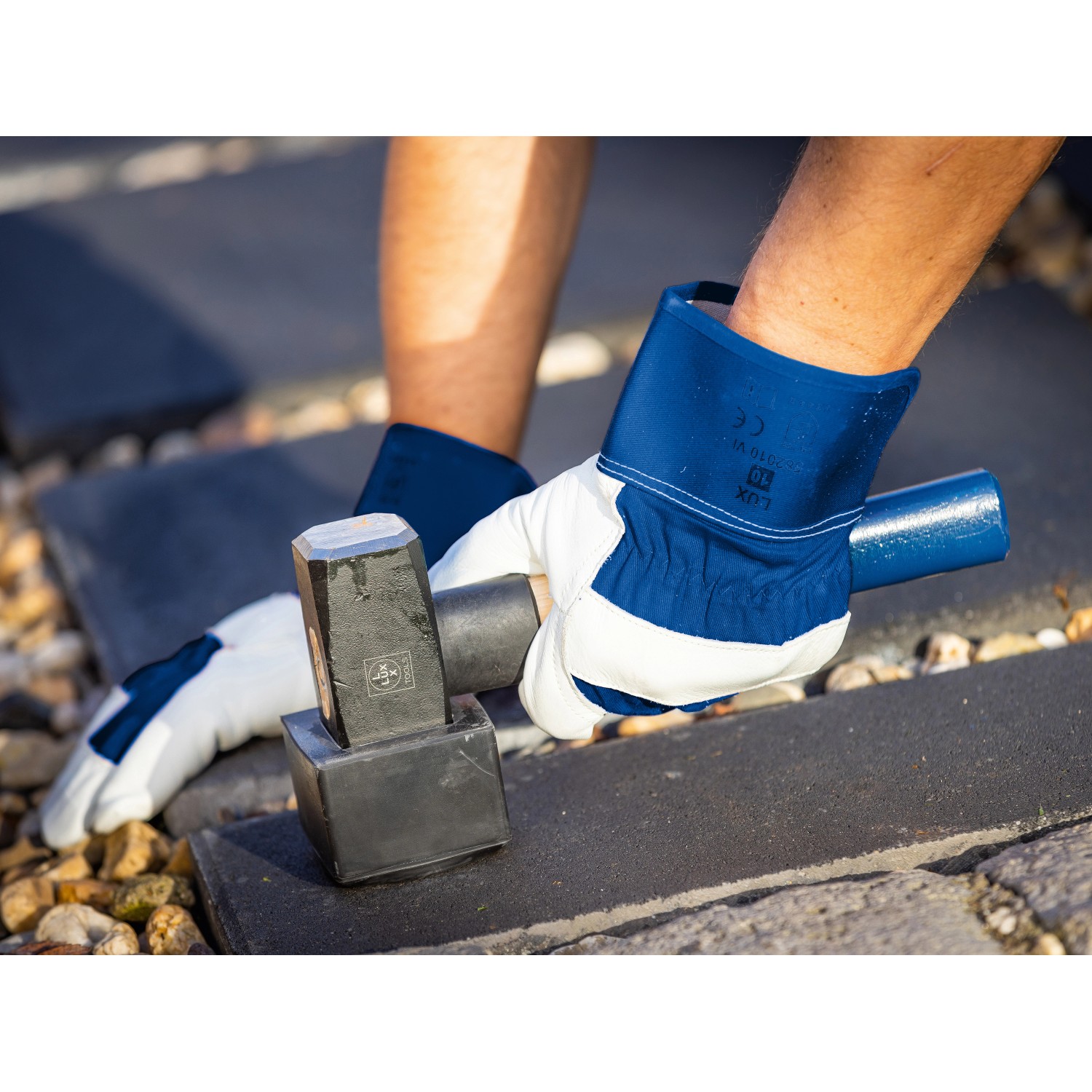 S vysoko kvalitnými pracovnými rukavicami značky LUX zvládnete hrubé práce v dielni a dome a zároveň získate účinnú ochranu vašich rúk. Rukavice sú vyrobené z hovädzej kože s elastickými polyesterovými vložkami a vnútornou stranou z bavlny. Vďaka tomu sú extrémne zaťažiteľné, dobre sadnú a ponúkajú príjemný komfort pri nosení.
