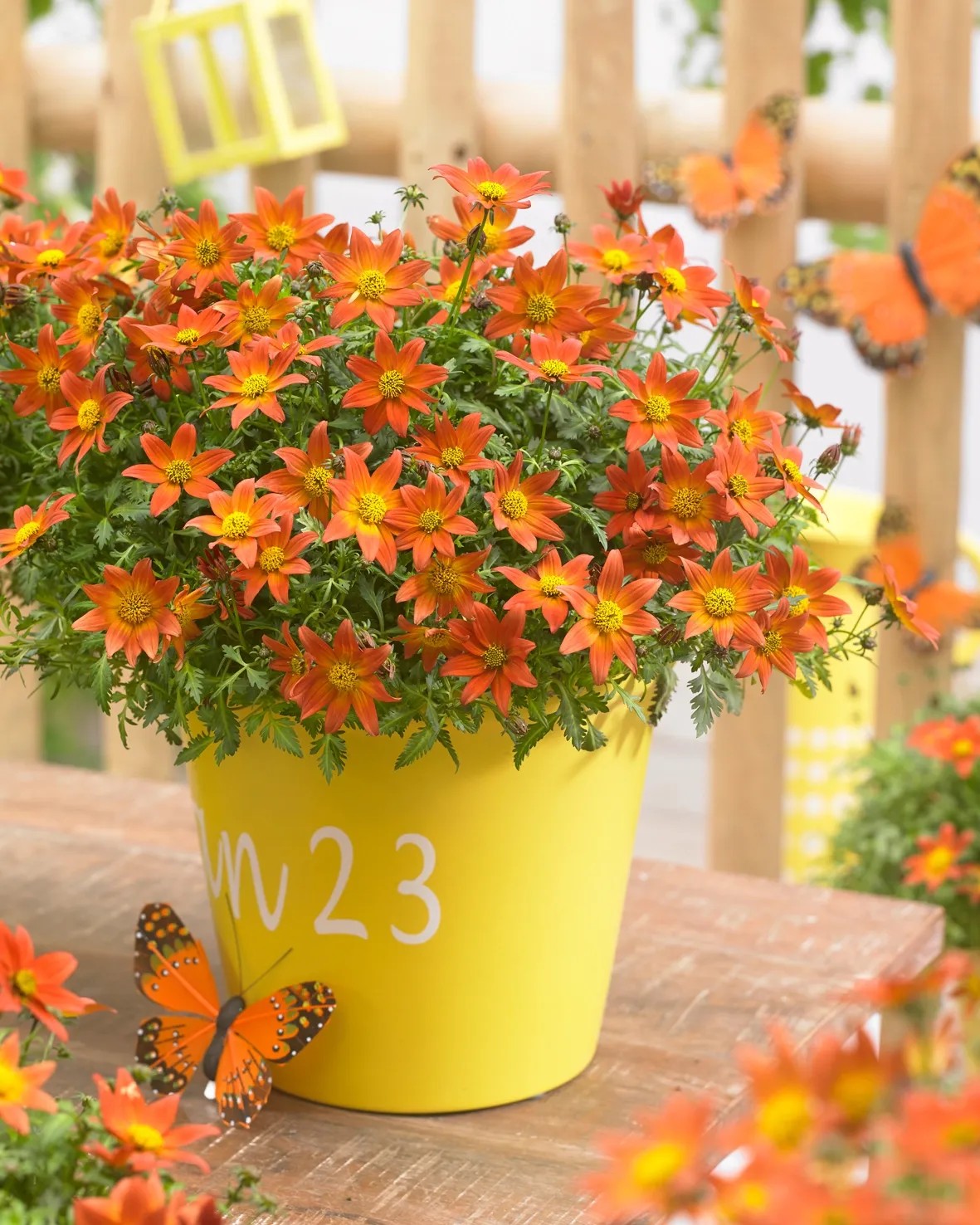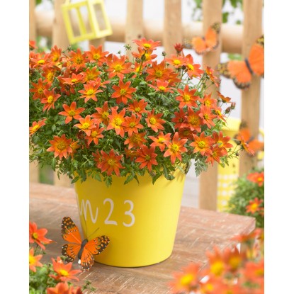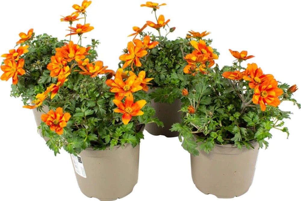 Grow by OBI dvojzubec "Beedance" (Bidens ferulifolia) kvitne počas celej sezóny žlto-oranžovými kvetmi pre dlhodobé potešenie. Najlepšie sa mu darí na slnečnom až polotienistom stanovisku. Veľmi dôležitá je vysoká priepustnosť substrátu pre vodu, pretože premokrenie a voda stojaca v kvetináči vedú k vzniku hniloby.