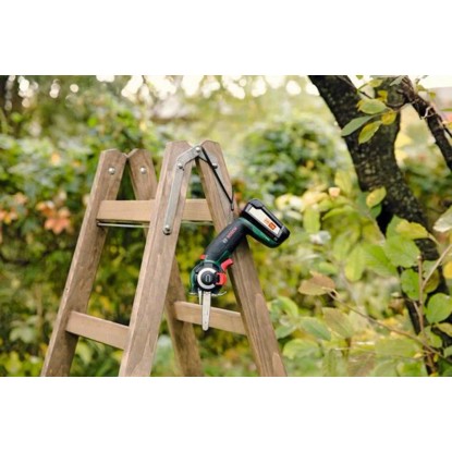 Píla je napájaná 18 V Lithium-Ion batériou (predáva sa samostatne, nie je súčasťou balenia), to umožňuje bezdrôtovo a teda flexibilné použitie na záhrade s dostatočnou voľnosťou pohybu. Čip Syneon riadi spotrebu energie a zaisťuje optimálnu účinnosť a dlhú životnosť. Pri svojej práci ťažíte z maximálneho výkonu píly.