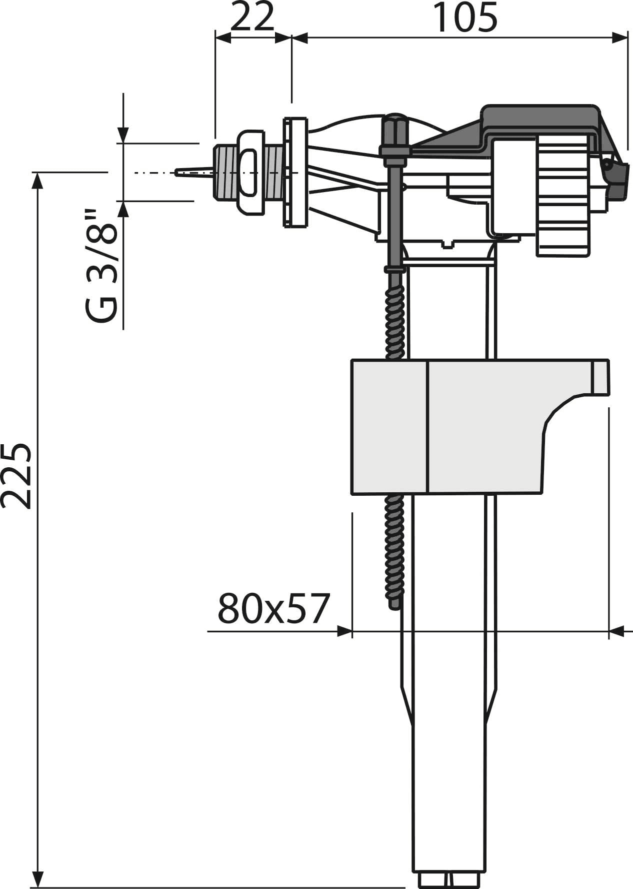 Napúšťací ventil s bočným kovovým závitom pre plastové nádržky pre inštaláciu na strane nádržky, pre plastové splachovacie nádržky a predstenové inštalačné systémy alebo na výmenu alebo náhradu. Kompatibilný s predstenovými inštalačnými systémami Alcadrain radu A. Malá citlivosť na rozdiel tlaku vo vodovodnom poriadku. Nastaviteľná výška vodnej hladiny. Plynulé uzavretie bez rázov. Zabudované sitko pre zachytenie nečistôt.