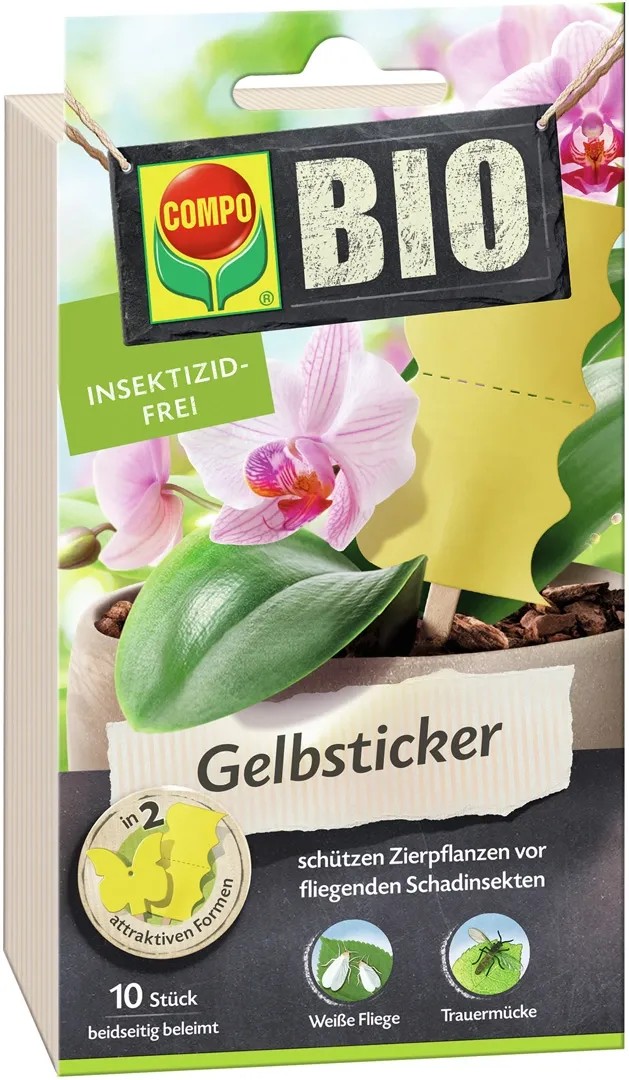 Compo BIO žlté lepové dosky chránia rastliny pred lietajúcim škodcami, ako sú molice, smutnicovité mušky, vŕtalkovité mušky, vošky a sitinovky penišníkovité. Sú ideálne na použitie v skleníkoch a zimných záhradách, ale aj priamo v domácnosti. Lepidlo na lepových doskách nesteká a zachováva si svoje lepivé vlastnosti po dlhú dobu. Bez insekticídov. Žlté lepové dosky sa jednoducho pripevnia v blízkosti rastlín pomocou viazacieho drôtu. Škodlivý hmyz je priťahovaný k žltej farbe dosky, tým sa prilepí na špeciálne lepidlo a tým sa výrazne minimalizuje napadnutie rastlín.