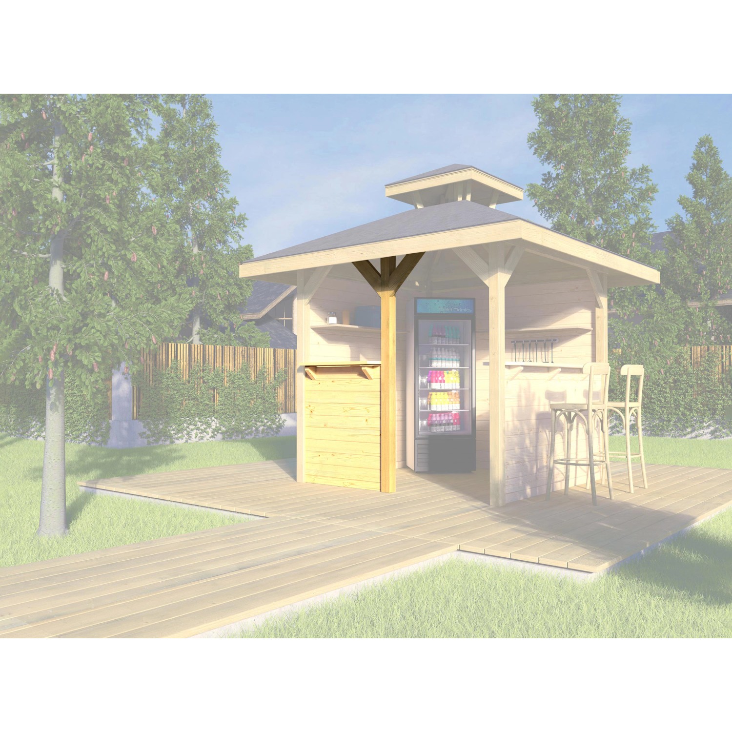Premeňte altánok na záhradný bar so stenou s odkladacím pultom a užite si dlhé letné večery. Stena je vyrobená z prírodného masívneho dreva s hrúbkou 28 mm. Stena vás tiež ochráni voči poveternostným vplyvom, dažďu, intenzívnemu slnečnému žiareniu a poslúži aj ako protipohľadová ochrana.