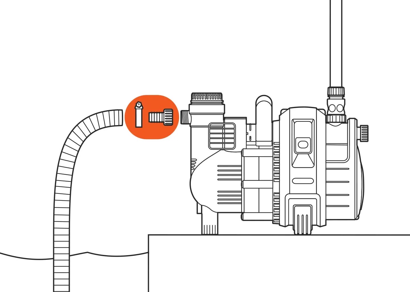 Toto šróbenie umožňuje pripojenie sacej hadice (predávanej ako metráž - č.v. 1721-22) k čerpadlu, odolné proti podtlaku. Spolu s hadicovou svorkou umožňuje ľahké zaistenie. Skrutkovanie má priemer 25 mm (1") a vnútorný závit 33,3 mm (G 1).