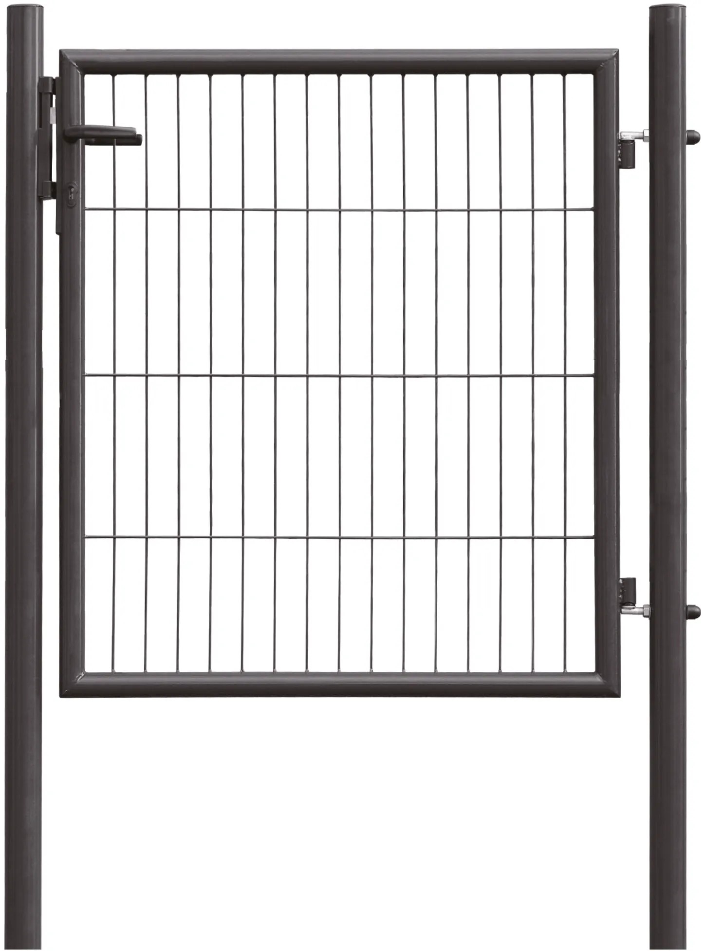Bránka pre zvárané pletivo z ocele, zinkovo fosfátovaná a práškovo lakovaná. Vrátane 2 stĺpikov, dorazového uholníka a rámovej zámky s farebnou vložkou.