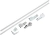 Súprava na upevnenie do podlahy slúži na montáž a utesnenie rohového sprchovacieho kúta Pelmo na podlahu a obsahuje potrebné spojovacie prvky, krytky závesov, profily odpudzujúce vodu a montážnu pomôcku.
