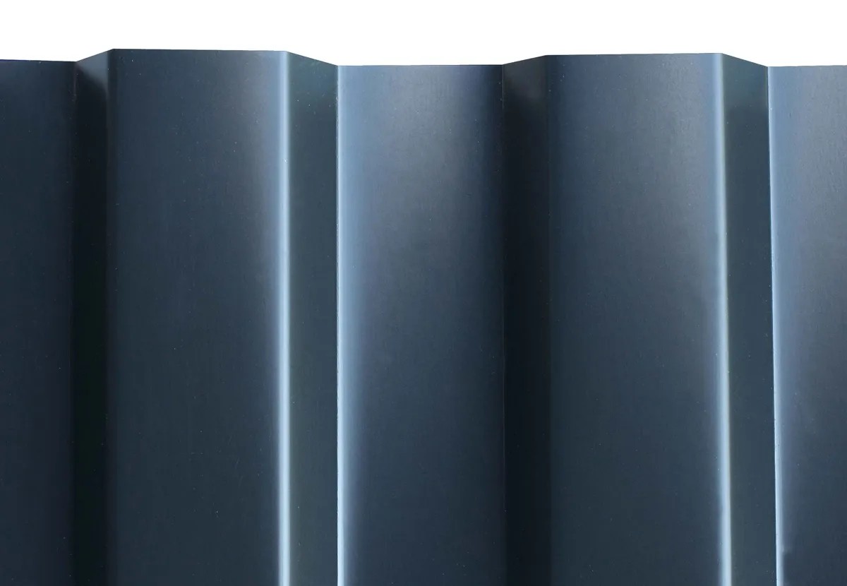Strešná krytina je vyrobená z hliníkových strešných panelov s trapézovým profilom, ktoré sú natreté farbou (horná strana antracitová/spodná strana svetlo sivá). Strecha je nerozbitná a odolná voči krúpam a vysoko tvarovo stála pri vysokých teplotách. Pri daždi môže byť strecha veľmi hlučná.